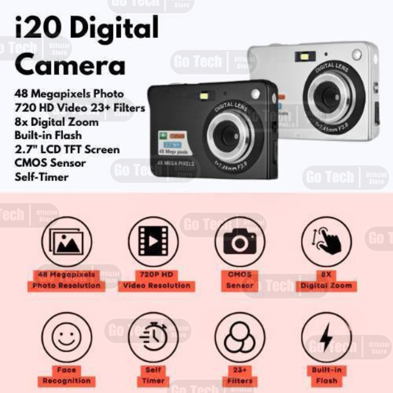 GO TECH - CAMERA DIGITAL DIGICAM KAMERA POCKET 48MP DIGITAL CAMERA POCKET RETRO / DIGITAL CAMERA I20 DIGICAM 48MP