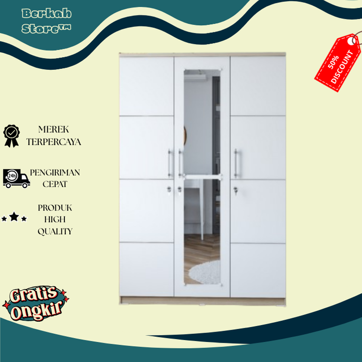 lemari pakaian 3 pintu kayu berkuakitas termurah gratis ongkir