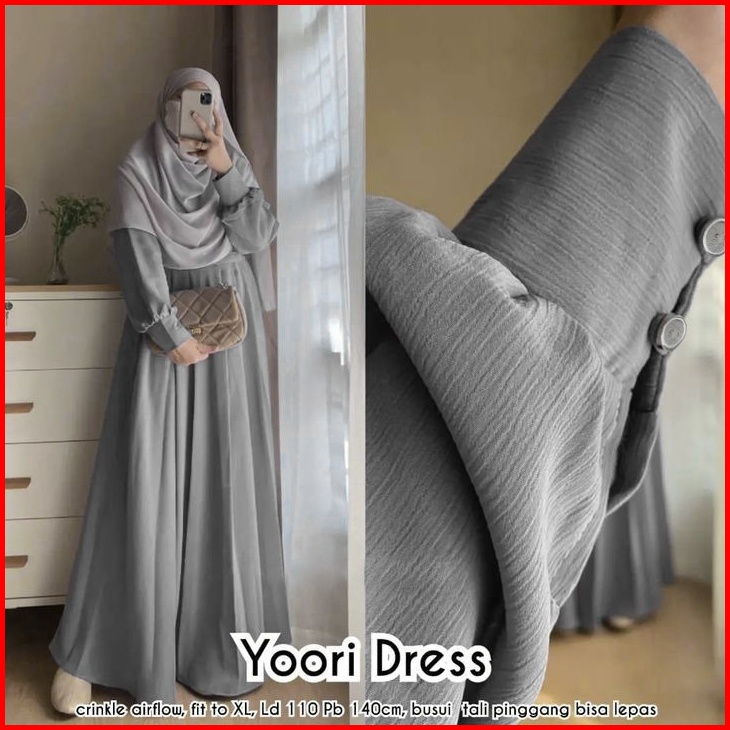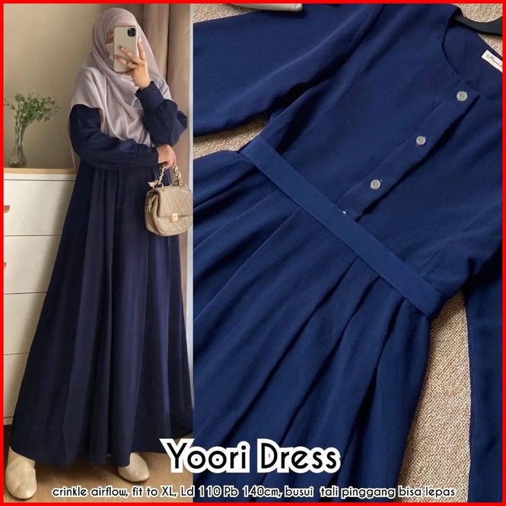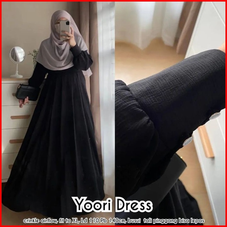 Femes Yoori Dress Maxy Gamis Muslim Wanita Matt Cringkle Airflow Polos Basic Ootd Lebaran Premium