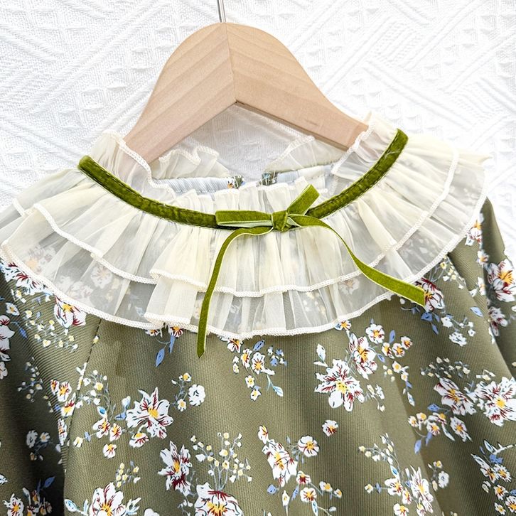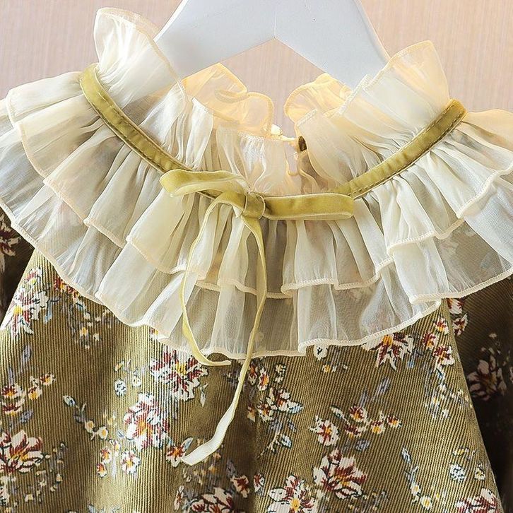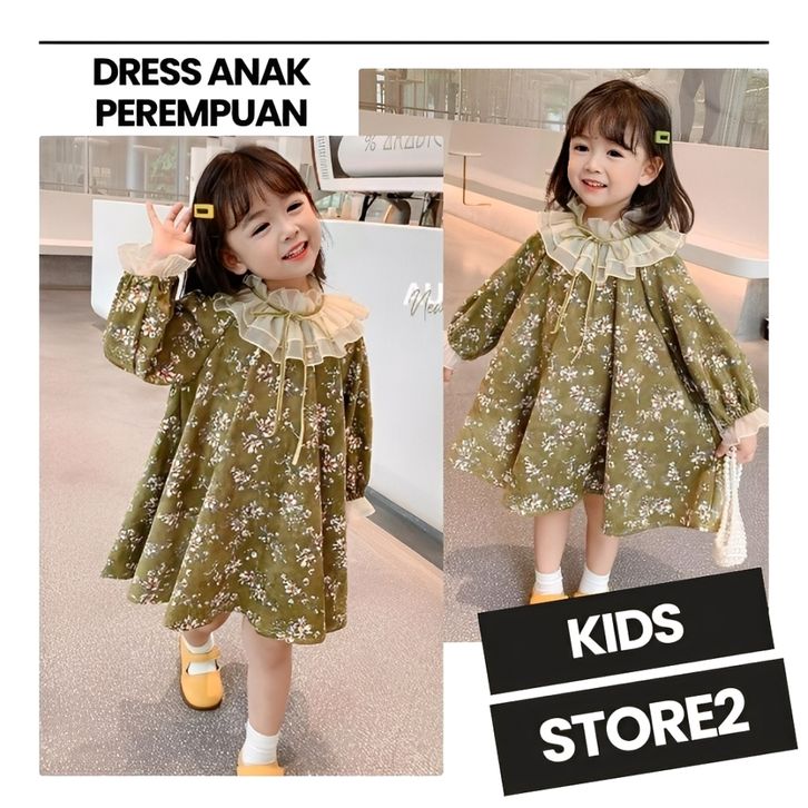 Dress Anak Perempuan Fashion Bunga Lengan Panjang Kerah Renda Import Usia 1-4 Tahun Best Seller Termurah