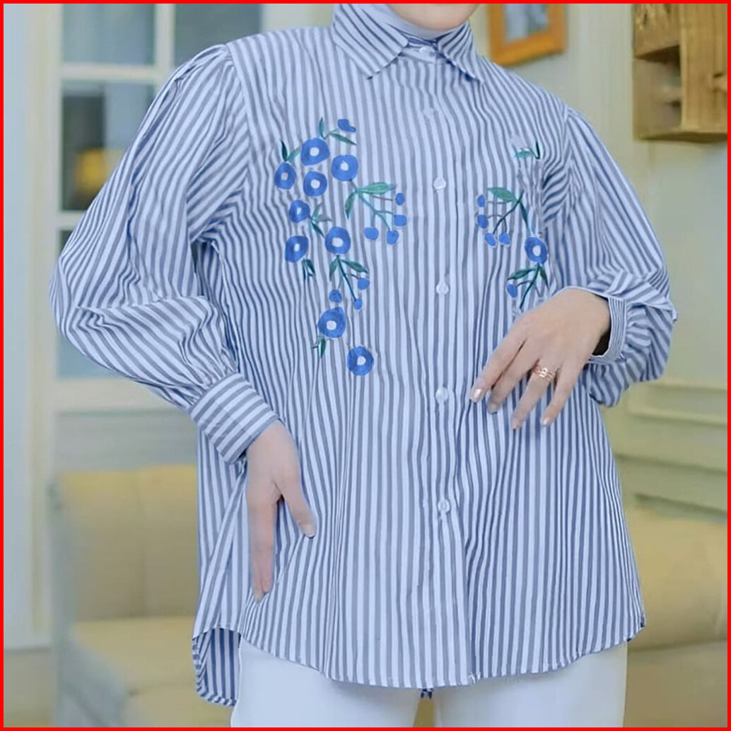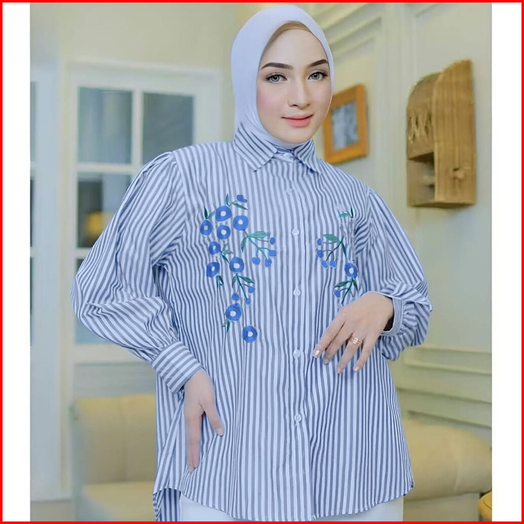 Femes Rosaline Stripe Flower Kemeja Atasan Wanita Dewasa Fit To L Xl Besar Ootd Korean Style Premium