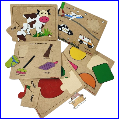 Omocha Toys - Puzzle Sablon Isi 5 Mainan Edukatif Anak Puzzle Kayu Mainan Puzzle