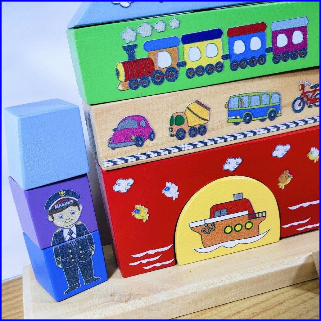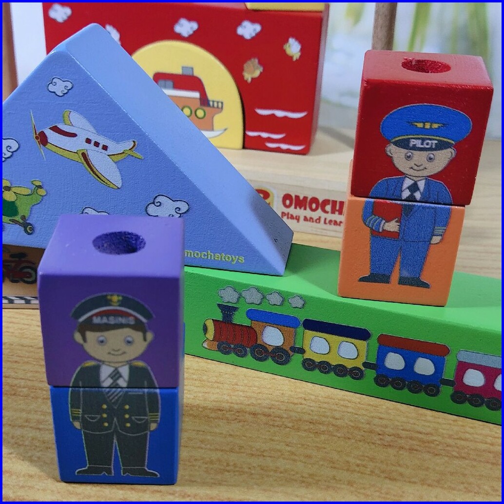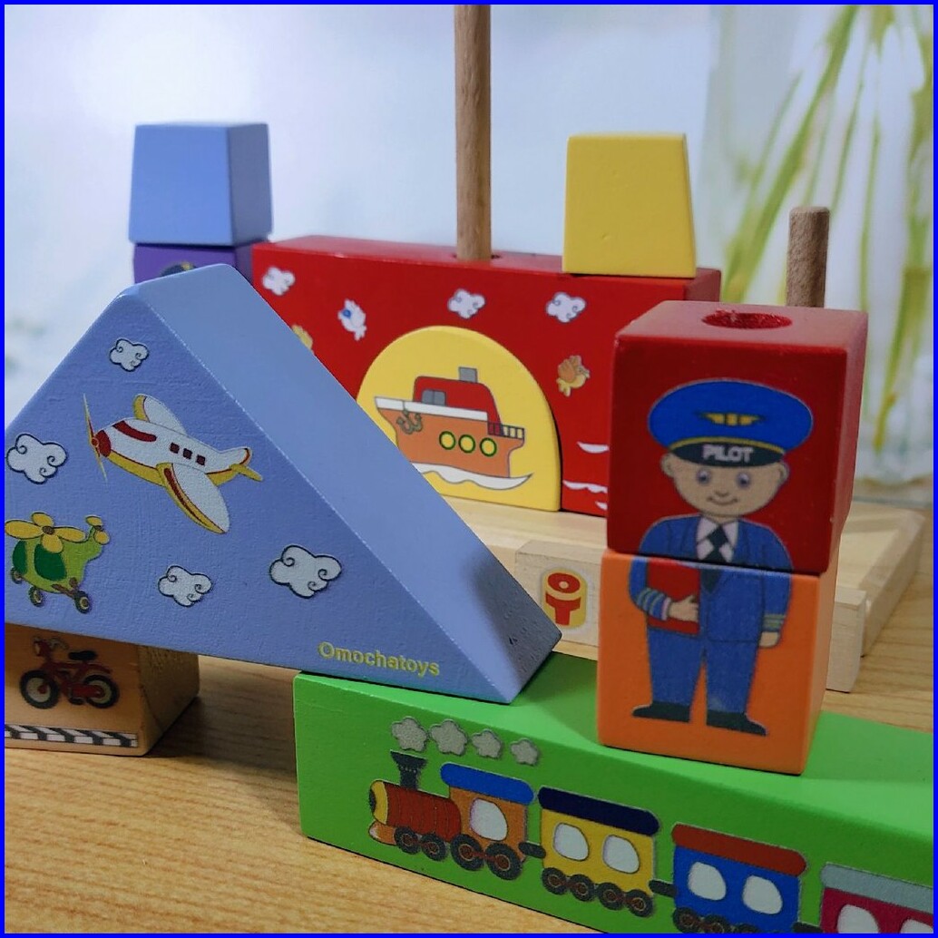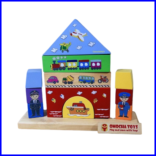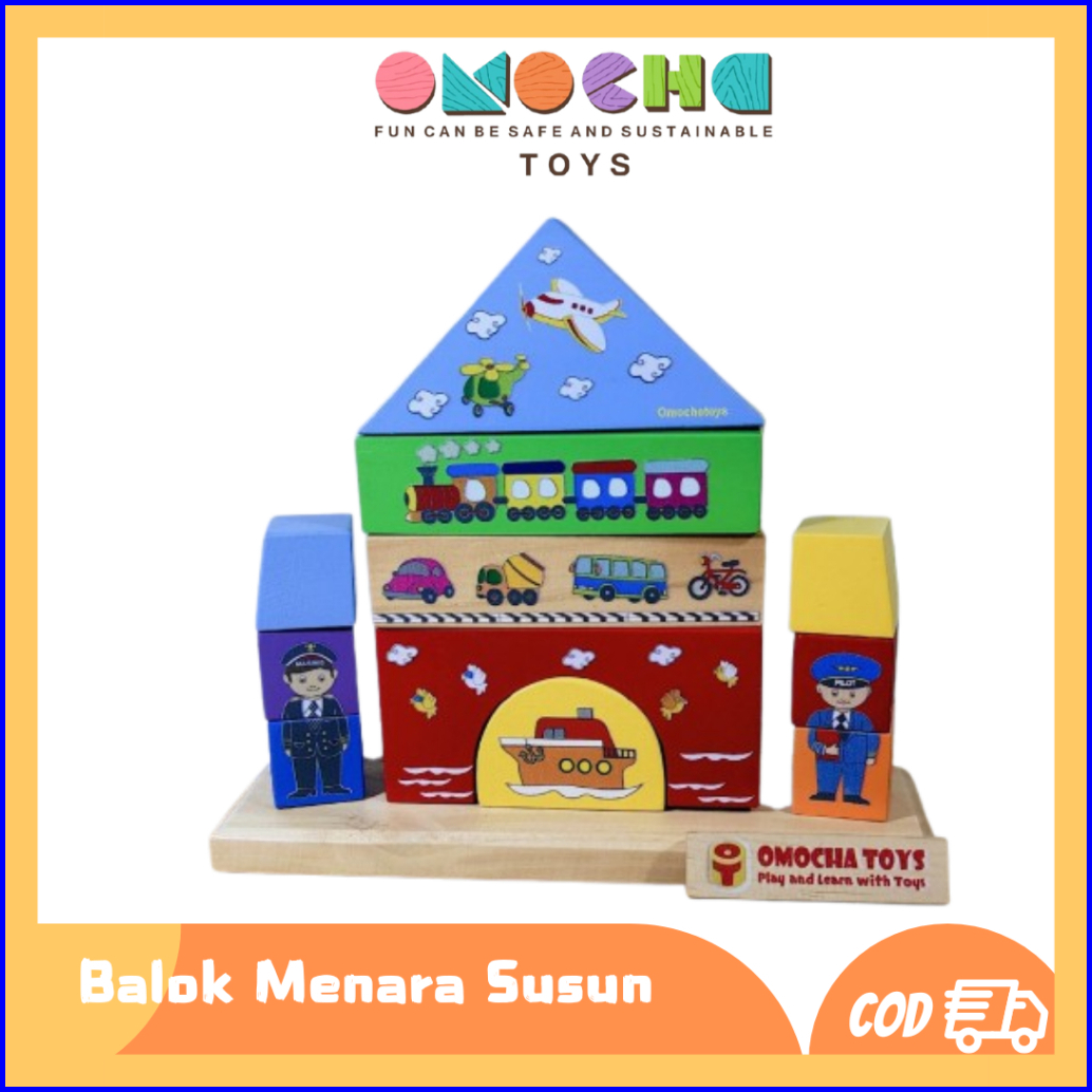 Omocha Toys - Mainan Balok Menara Susun Transportasi