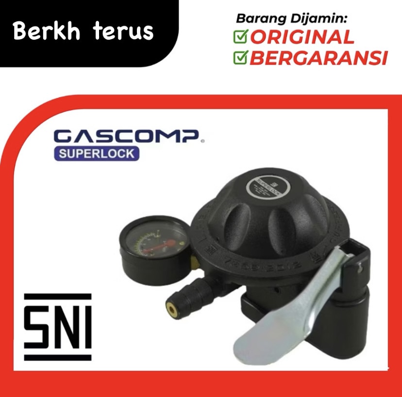 COMBO HEMAT + SELANG STARCAM / GASCOMP SUPERLOCK REGULATOR GAS LPG DOUBLE LOCK TEKANAN RENDAH SC-T12RM / SC-T12R