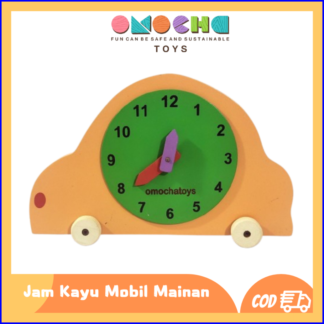 Omocha Toys - Jam Kayu Mobil Mainan Edukatif Belajar Waktu Dengan Mainan Kayu Yang Lucu