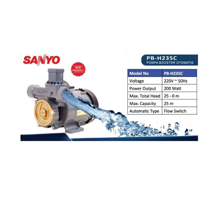 Pompa Air Booster Sanyo PB-H235 CS 200 Watt Otomatis / Produk Terbaru / Kwalitas Bagus / Jamin Awet / Mutu Terjamin