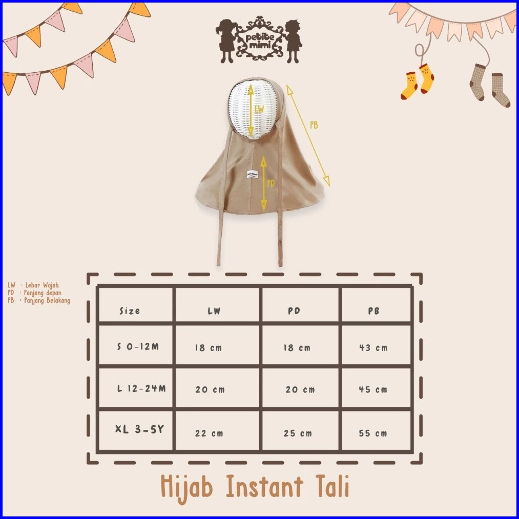Petite Mimi Hijab Tali Bayi Dan Anak - Hijab Tali Polos - Kerudung Anak - Hijab Kaos Polos