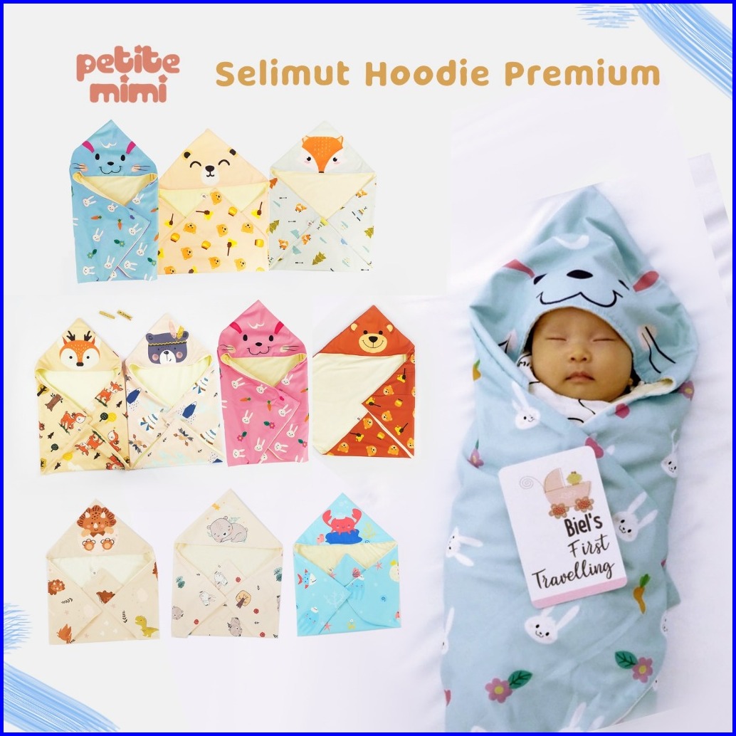 Petite Mimi Hooded Blanket Premium - Selimut Topi Bayi Motif Sni