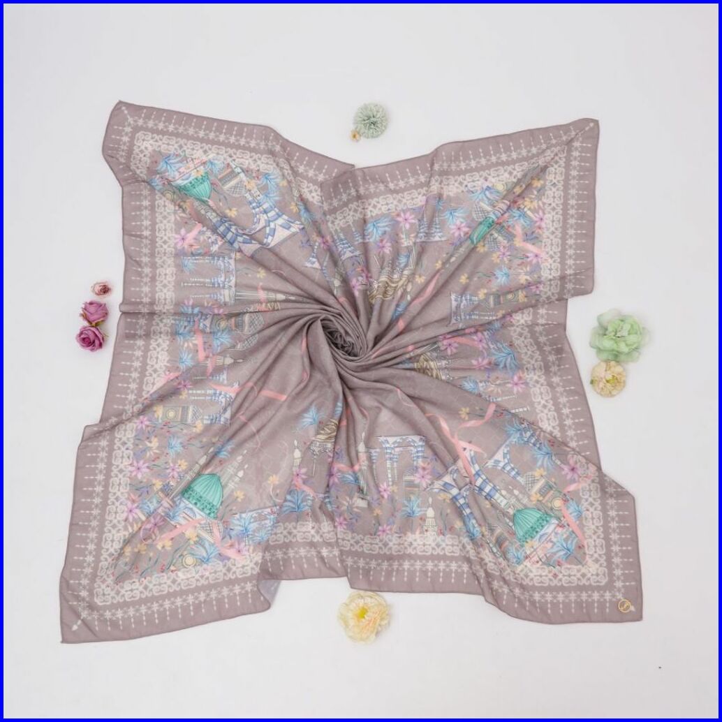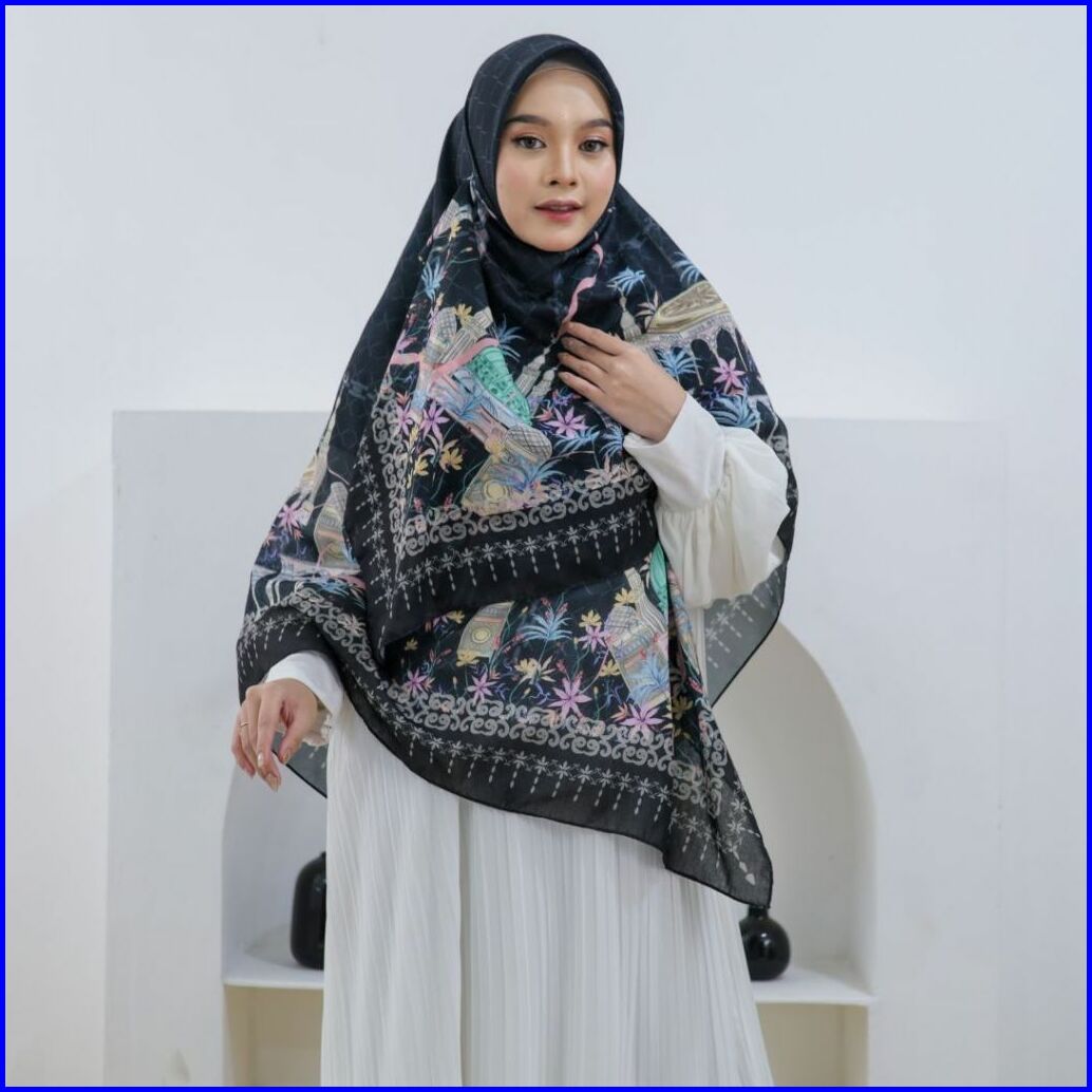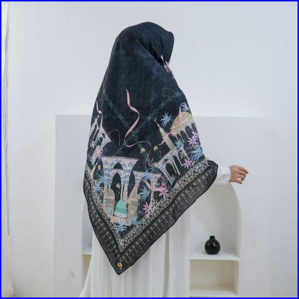 Thiflati Voal Segi Empat Jumbo 140x140 Cm Kerudung Segi Empat Motif Beautiful Medina Scarf Original