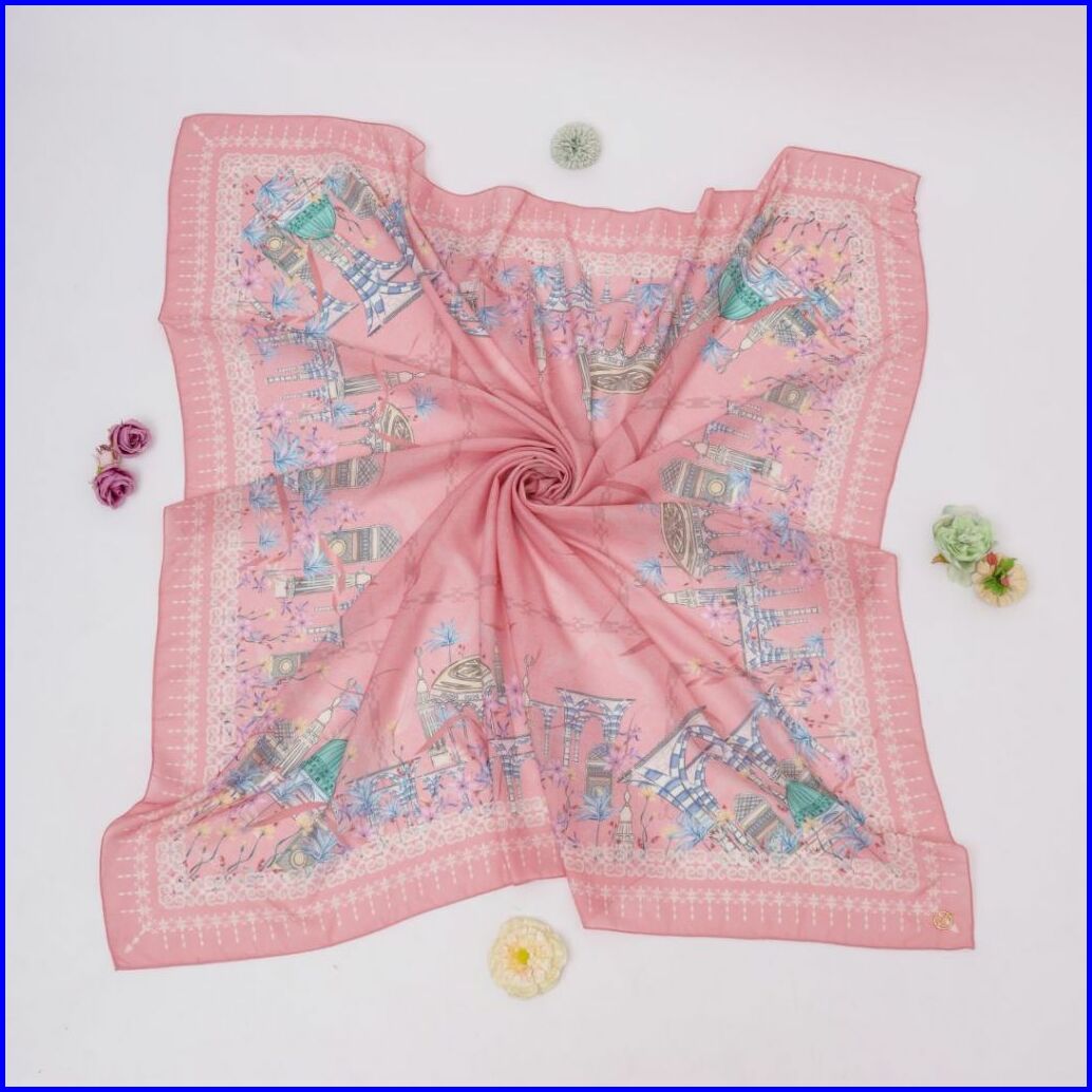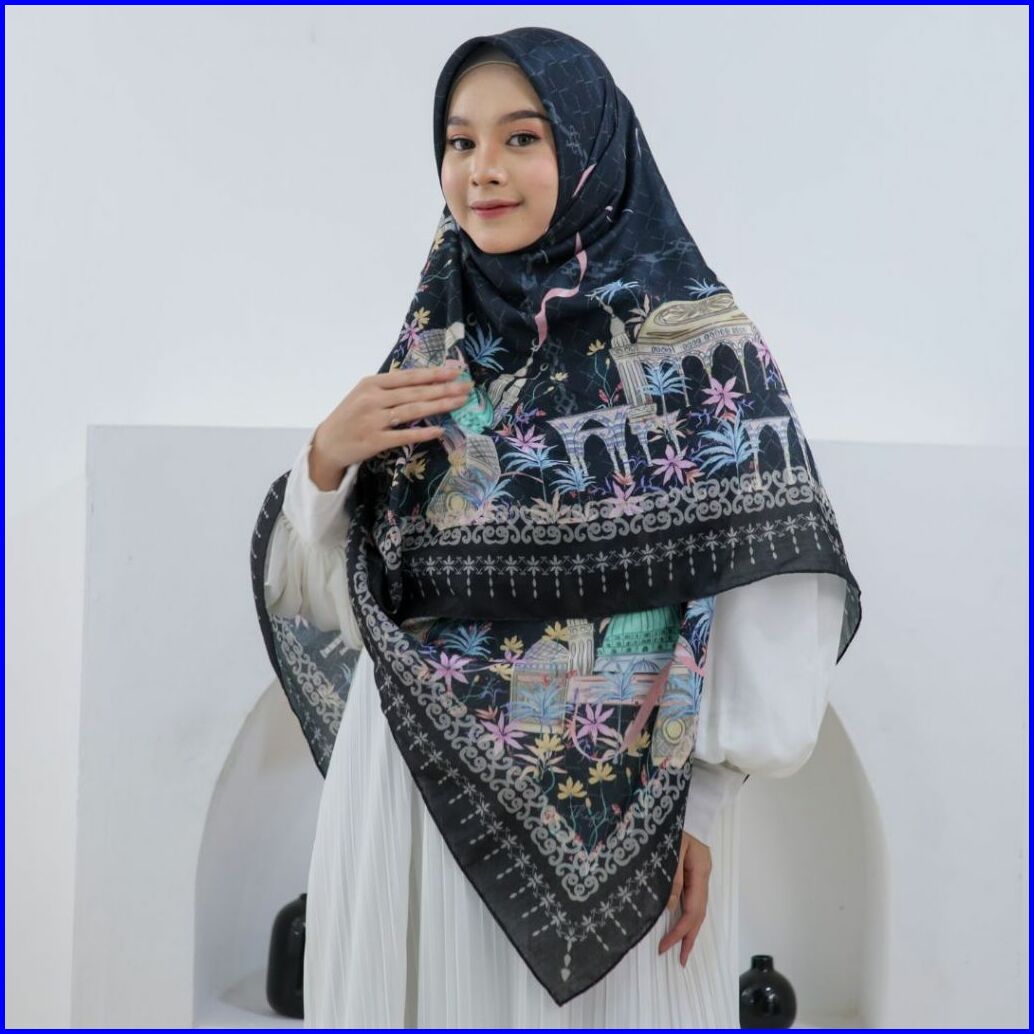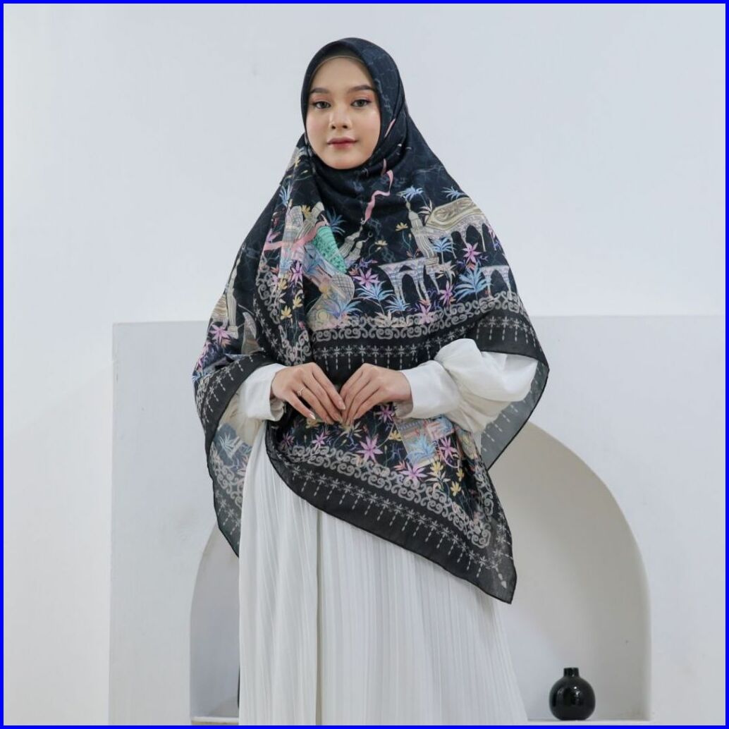 Thiflati Voal Segi Empat Jumbo 140x140 Cm Kerudung Segi Empat Motif Beautiful Medina Scarf Original