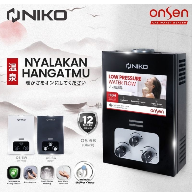 [FLASH SALE] NIKO WATER HEATER GAS ONSEN OS-6B/OS-6W/OS-6G