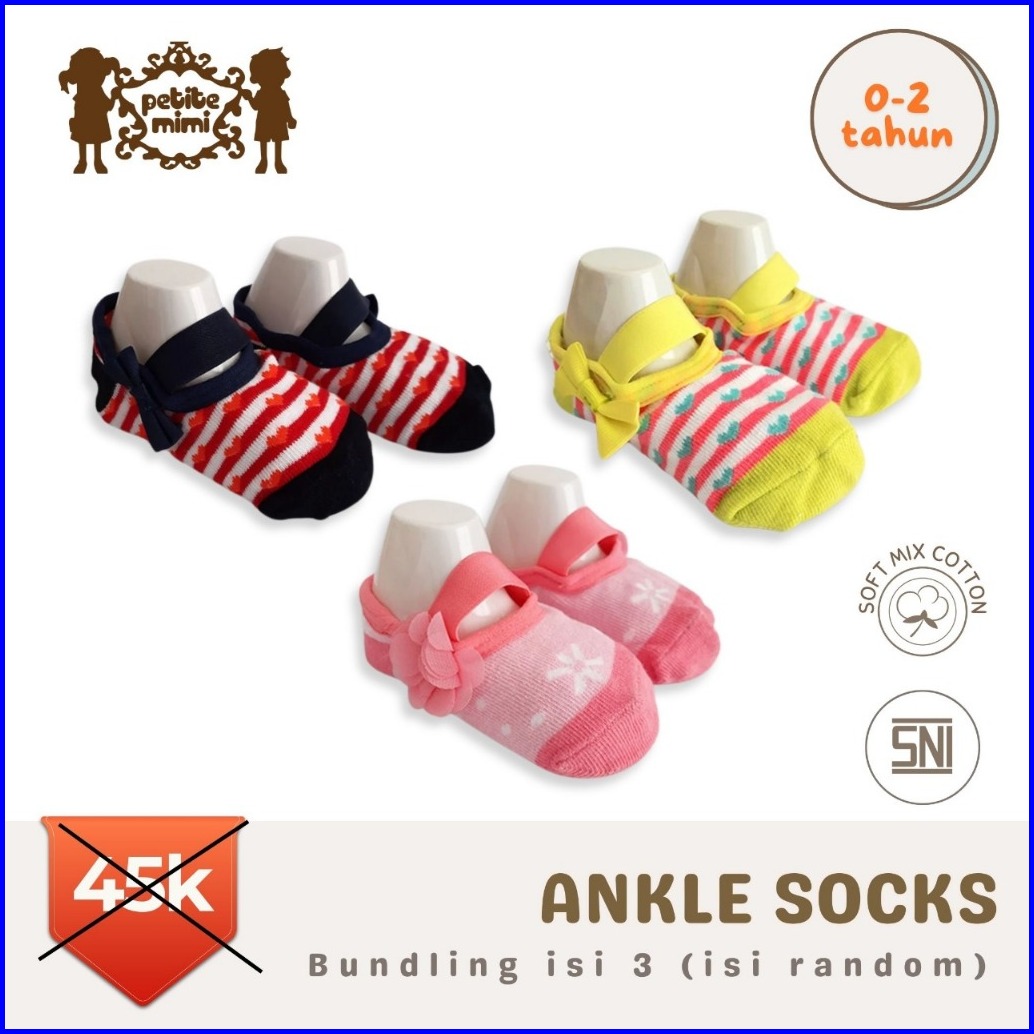 Petite Mimi Kaos Kaki Ankle - Kaos Kaki Isi 3 Pasang Random - Kaos Kaki Ankle Cuci Gudang
