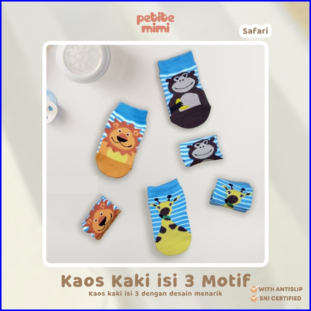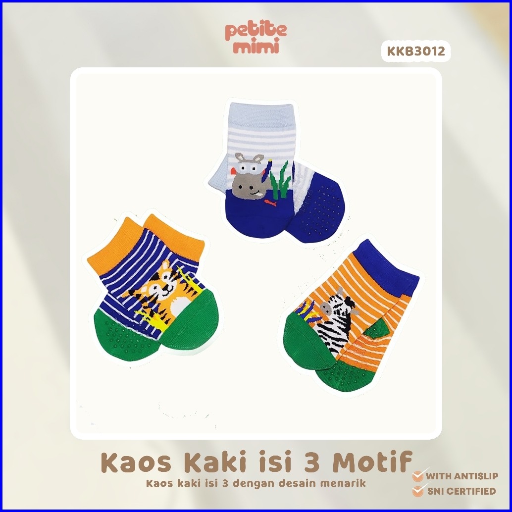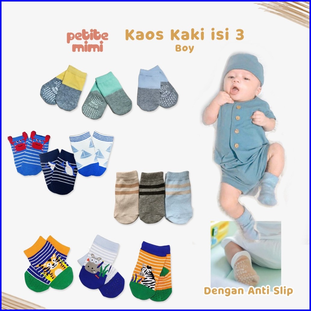 Petite Mimi Kaos Kaki Bayi Anti Slip - Kaos Kaki Baby - Kaos Kaki Newborn - Kaos Kaki Bayi Laki Laki - Kaos Kaki Isi 3