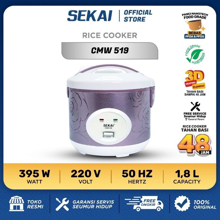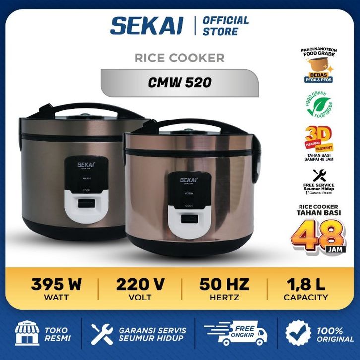 Rice Cooker Sekai 1.8 Liter 395 Watt Magic Com 3in1 Penanak Nasi Penghangat Stainless Body CMW520 Original Anti Lengket