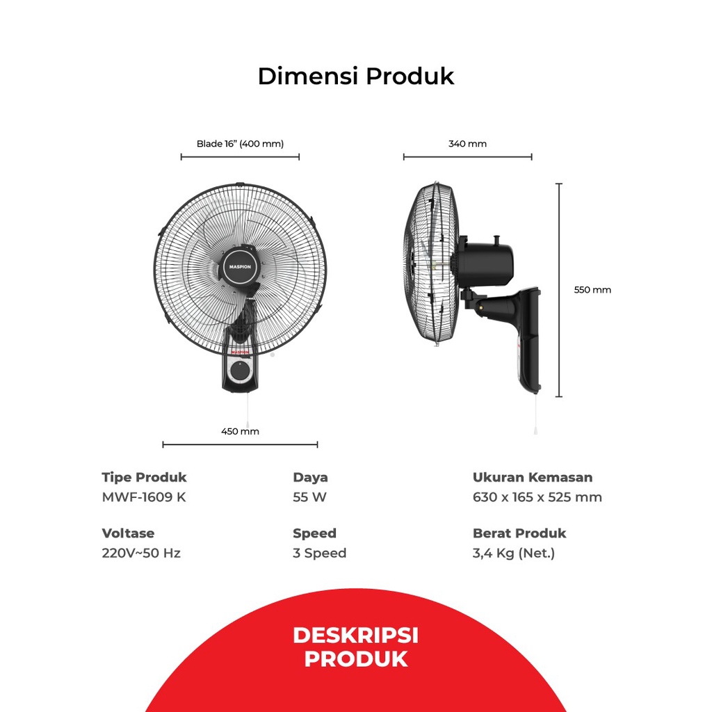 [FLASH SALE] MASPION MWF 1609 K / WALL FAN 16 IN / KIPAS ANGIN DINDING / MWF1609K