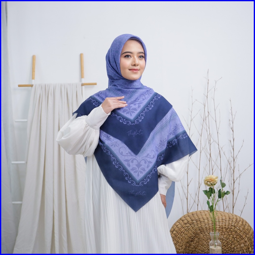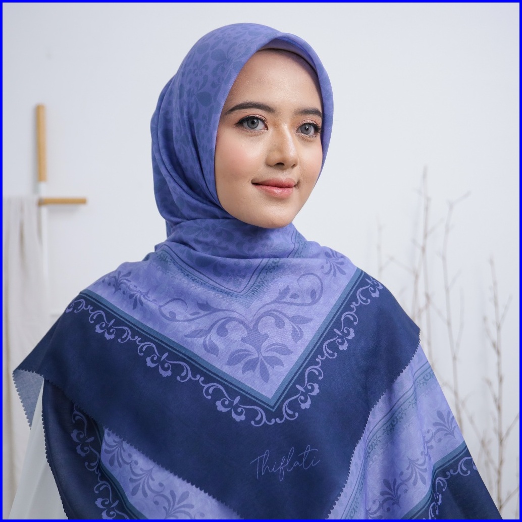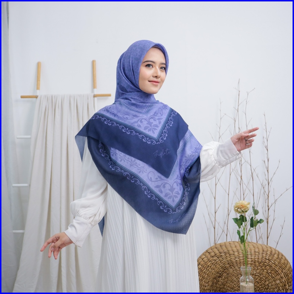 Thiflati Hijab Voal Jumbo 140x140 Cm Original Kerudung Segi Empat Motif Flower Crown Scarf