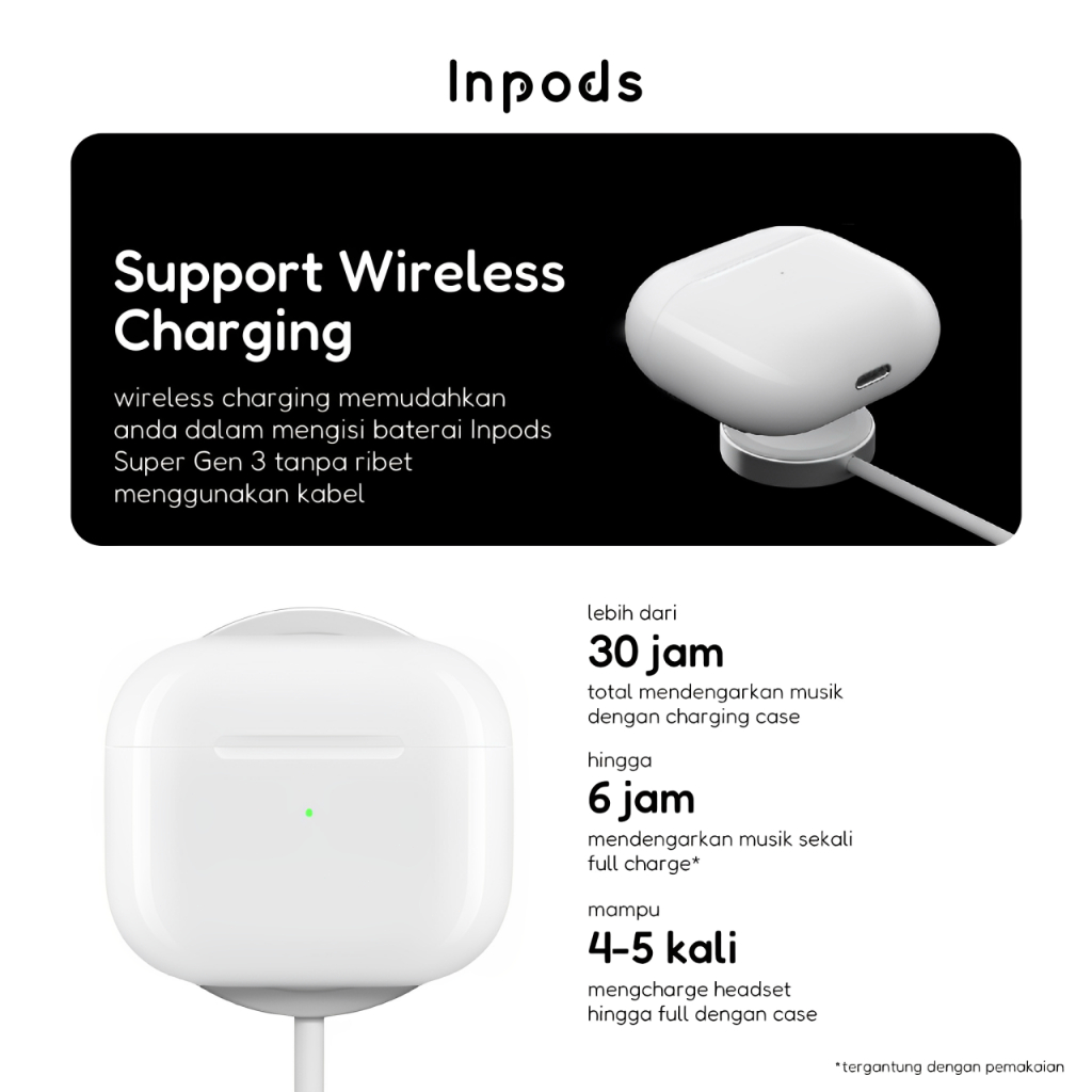 [] INDPROS 3 (KOTAK PENGISIAN NIRKABEL) HEADPHONE NIRKABEL EARBUD HEADPHONE BLUETOOTH NIRKABEL GENERASI KE-3