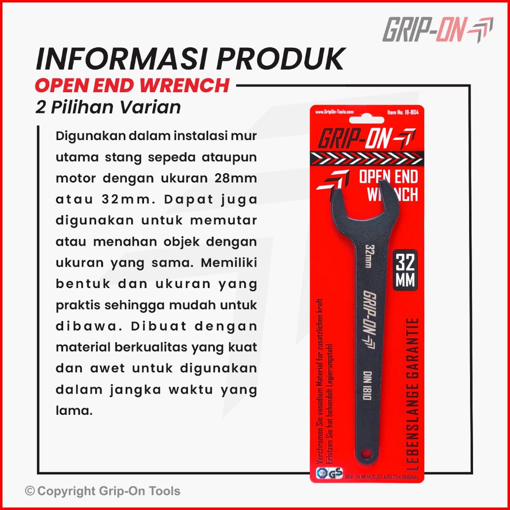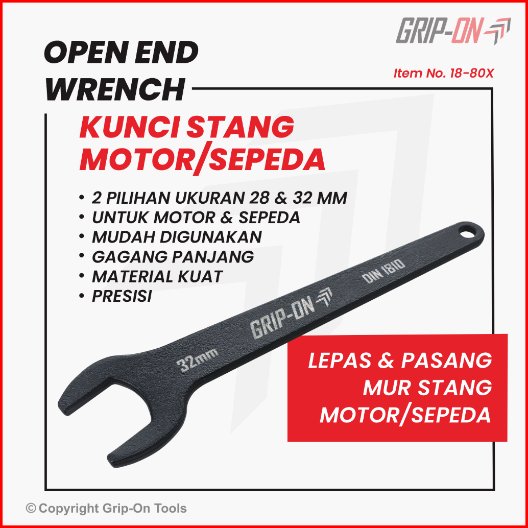 Grip-on Open End Wrench Kunci Stang Untuk Motor Dan Sepeda 28 Mm 32 Mm Grip On