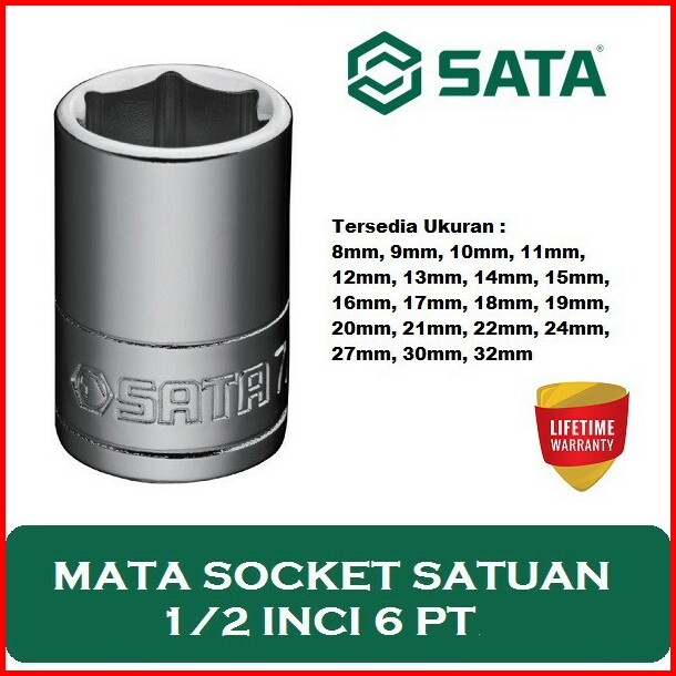 Sata Tools Mata Socket 18mm 6pt 1 2inci