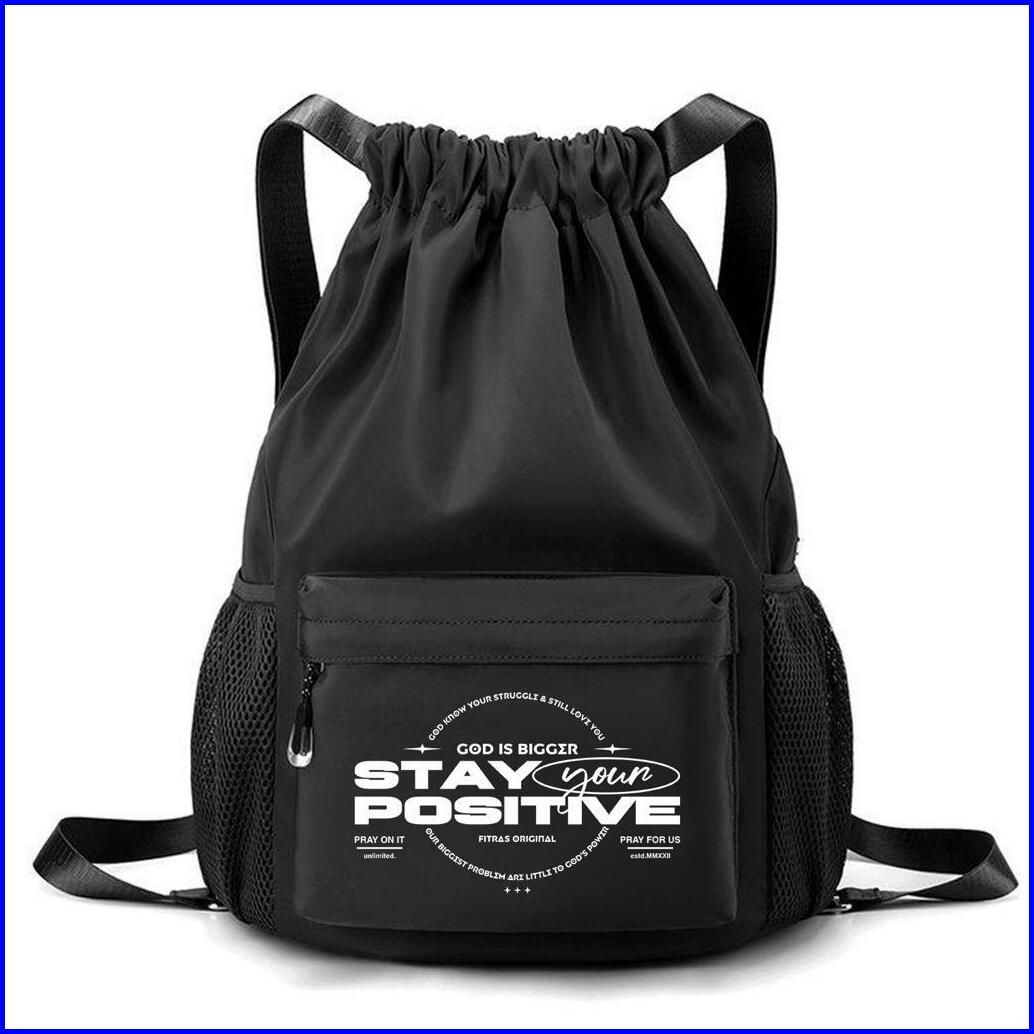 V3 - String Bag Tas Serut Motif Stay Positive Pria Wanita Gendong Terbaru