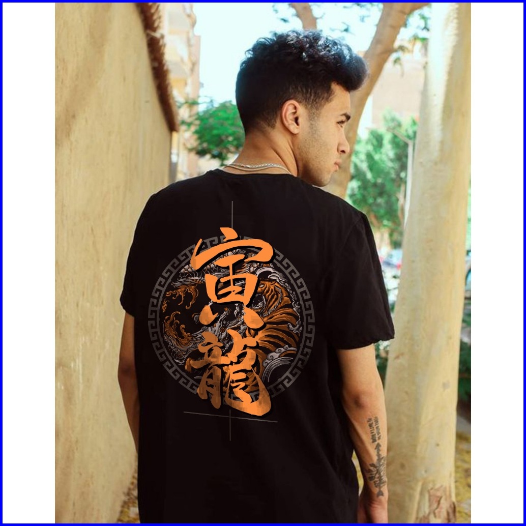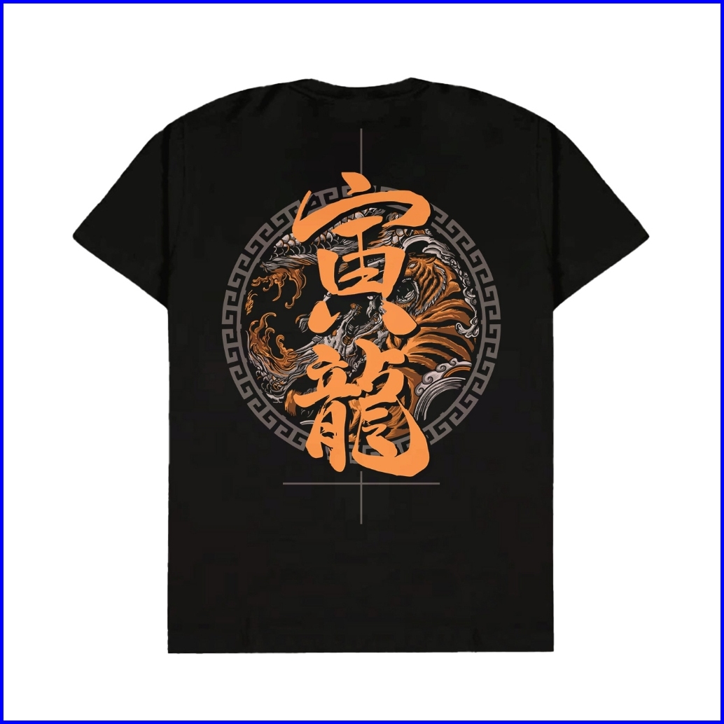 V3 - T-shirt Kaos Pria Warna Hitam Motif Toraryu