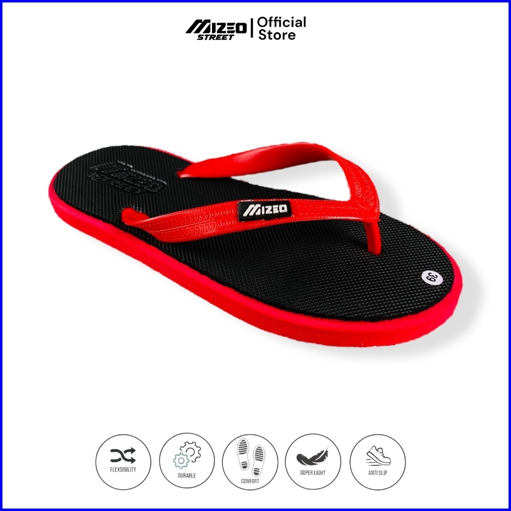 Mizeo Street Sandal Jepit Pria Wanita Rubber Kombinasi Merah - Hitam M025