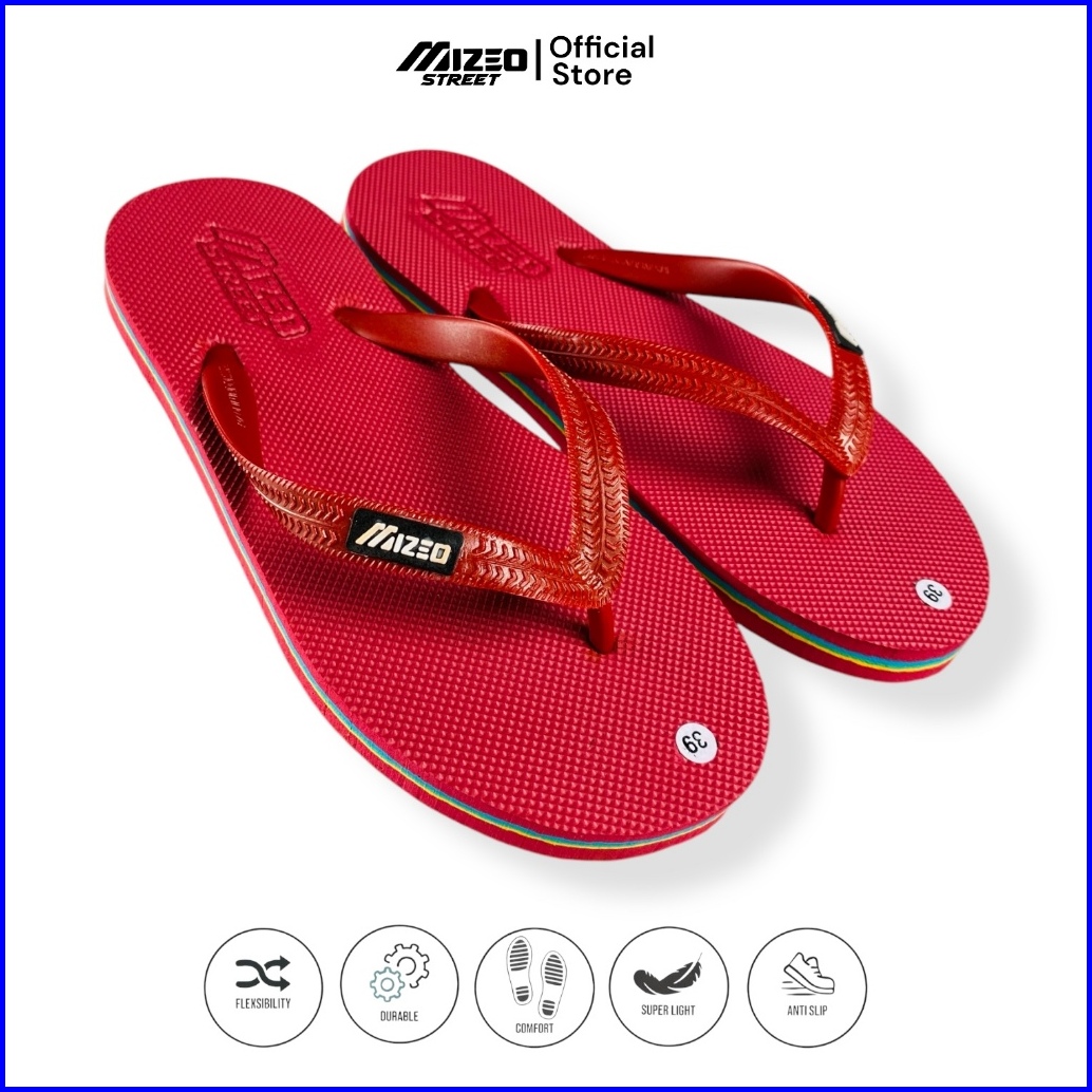 Mizeo Street Sandal Jepit Pria Rubber Polos Biru Stripe Merah Hijau M023