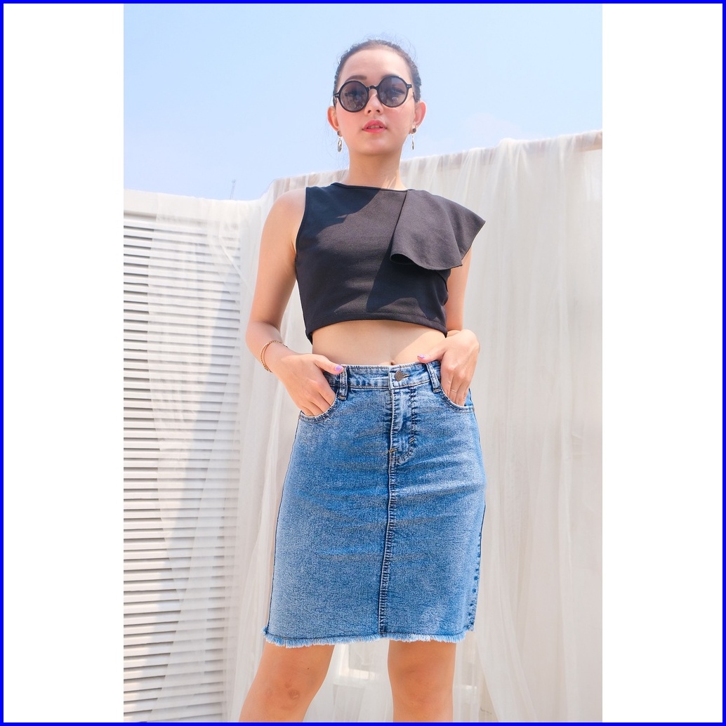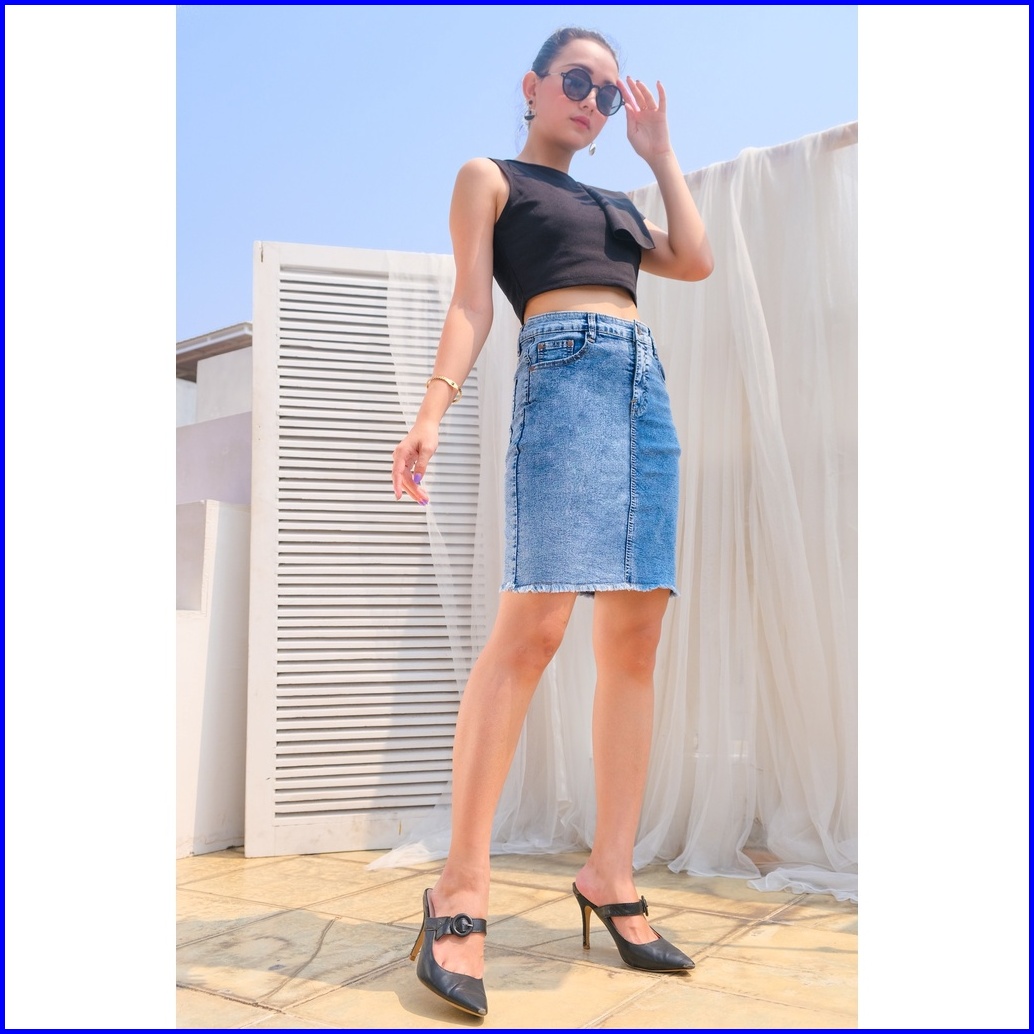 Bandidas - Rok Jeans Pendek Wantia Rok Mini Denim Model Rawis