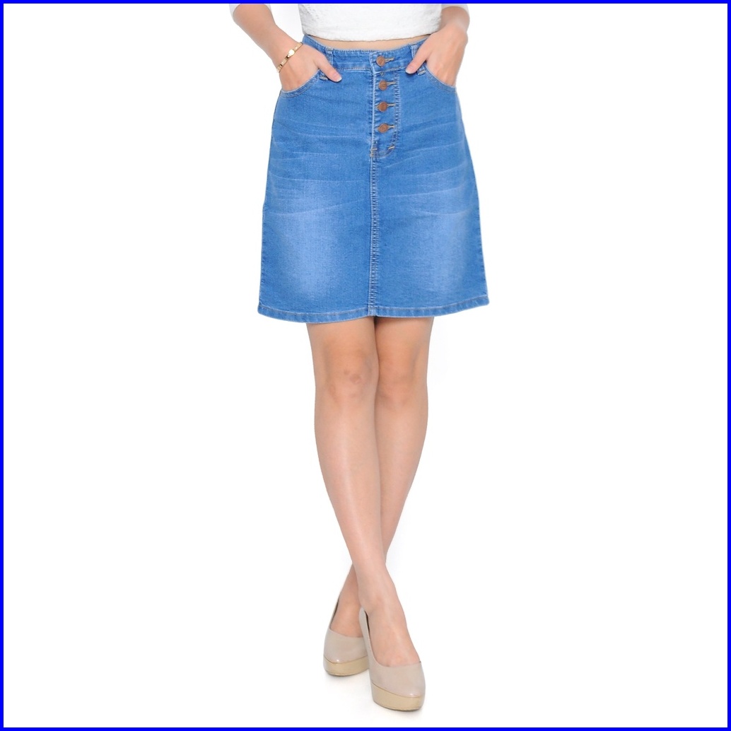 Bandidas - Cuci Gudang Rok Jeans Pendek Wanita Rok Mini Kancing 4