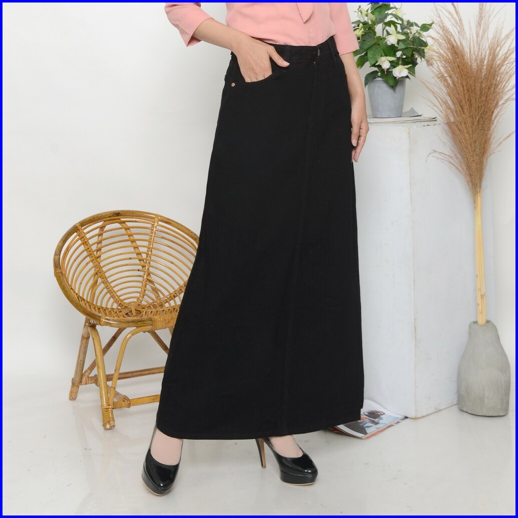 Bandidas - Highwaist Rok Jeans Panjang Wanita Kancing 1 Hitam