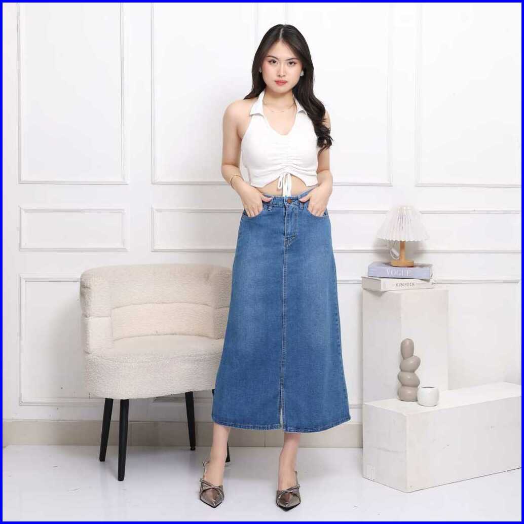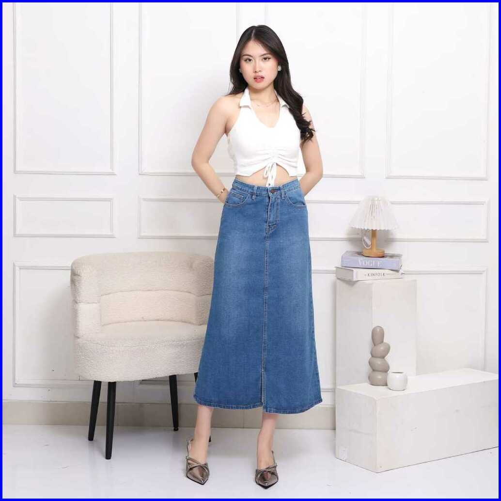 Bandidas - Hw Rok Jeans 7 9 Wanita Model Polos Belah 2 Warna