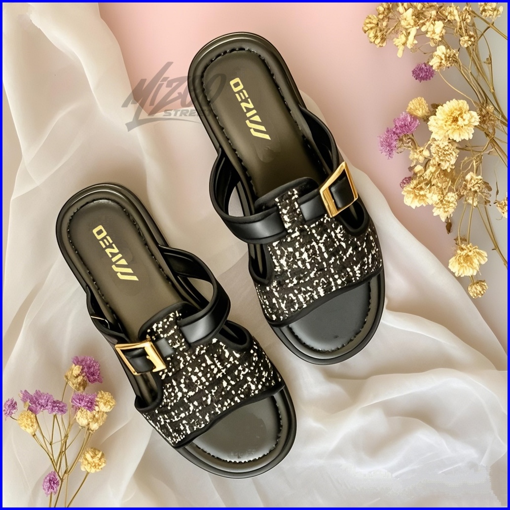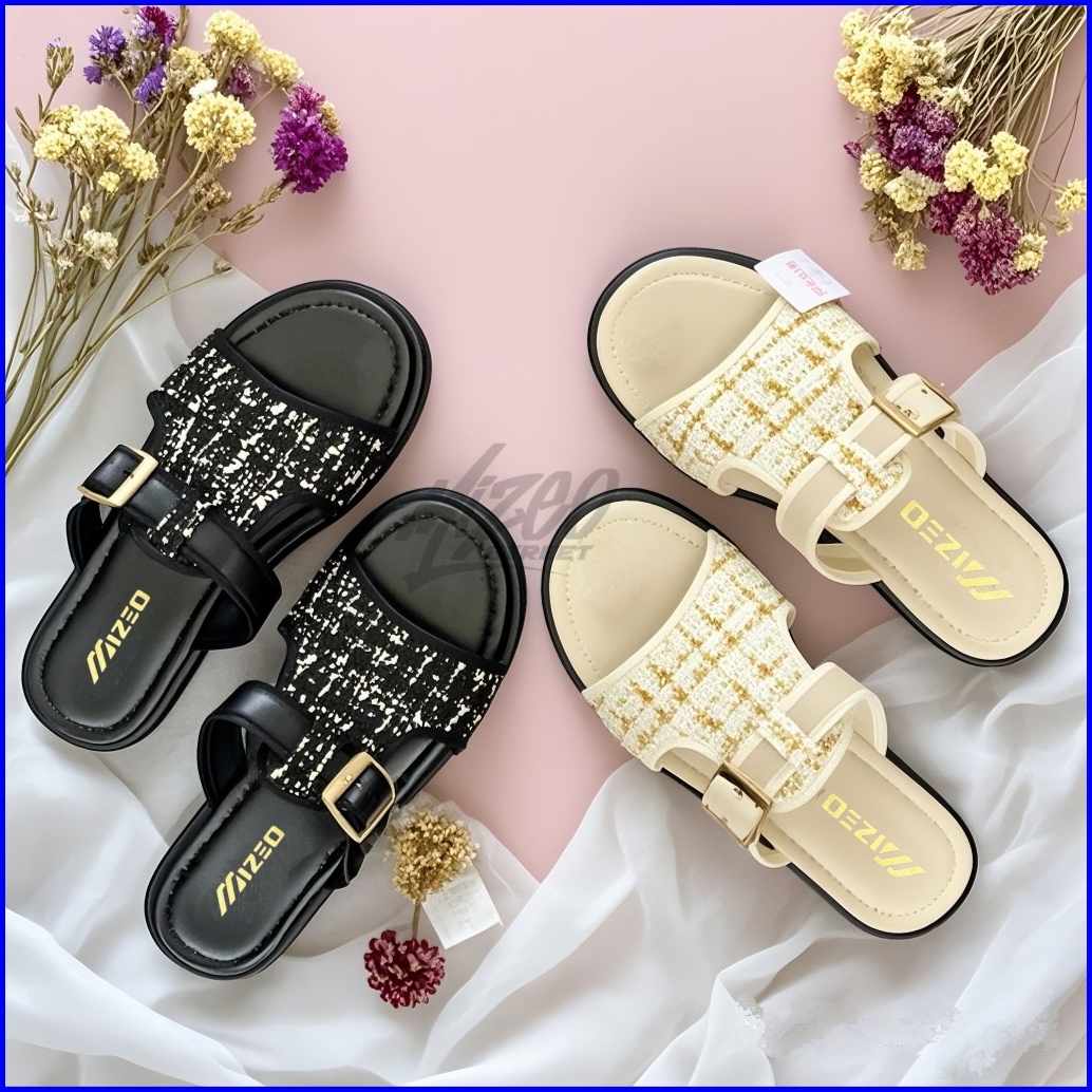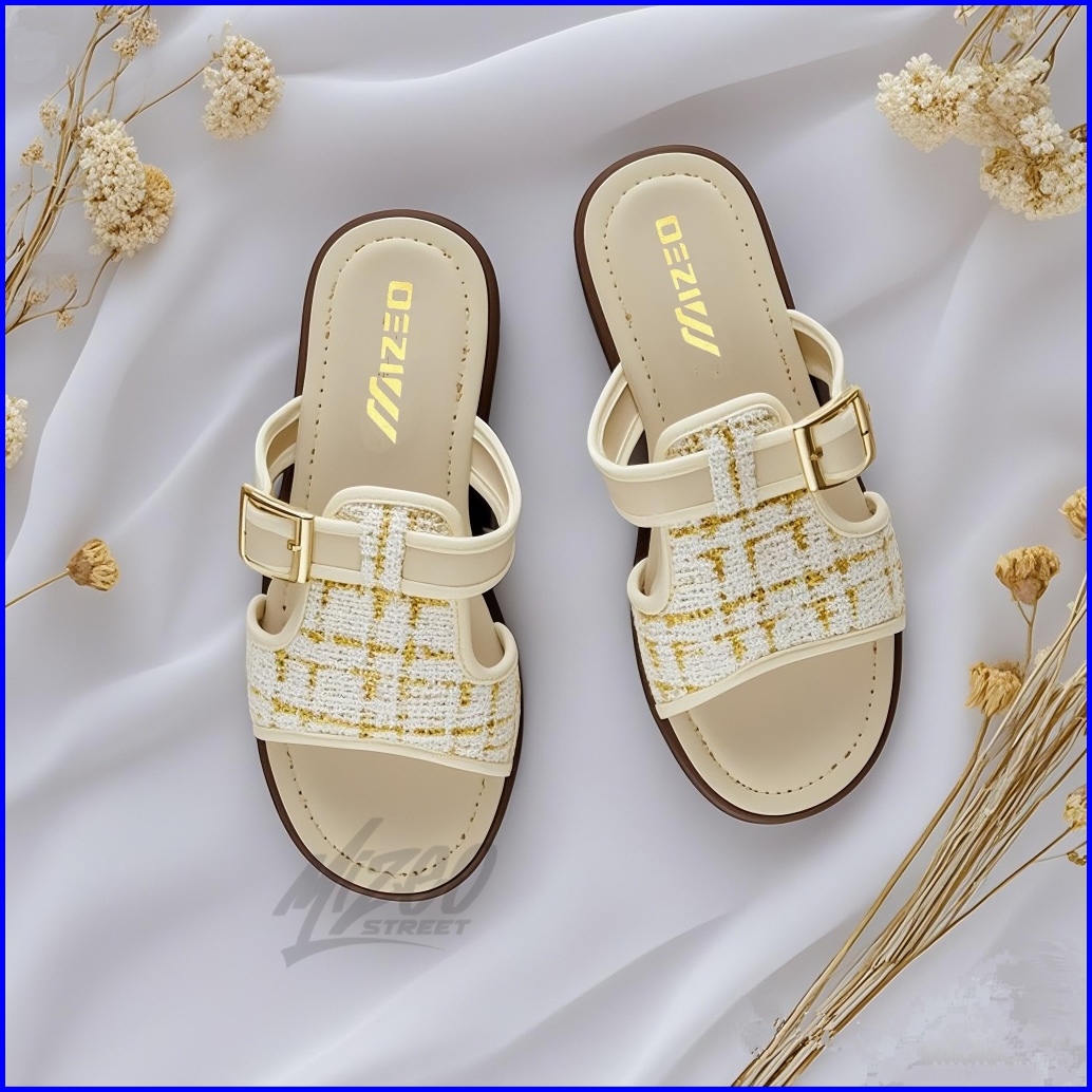 Sandal Slip On Wanita Tali Gesper Motif Rajut Trendy Kekinian