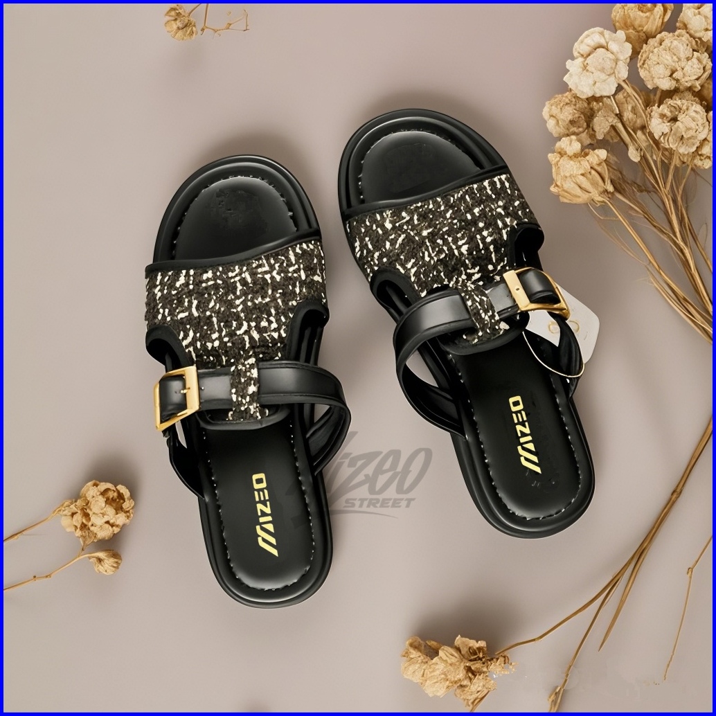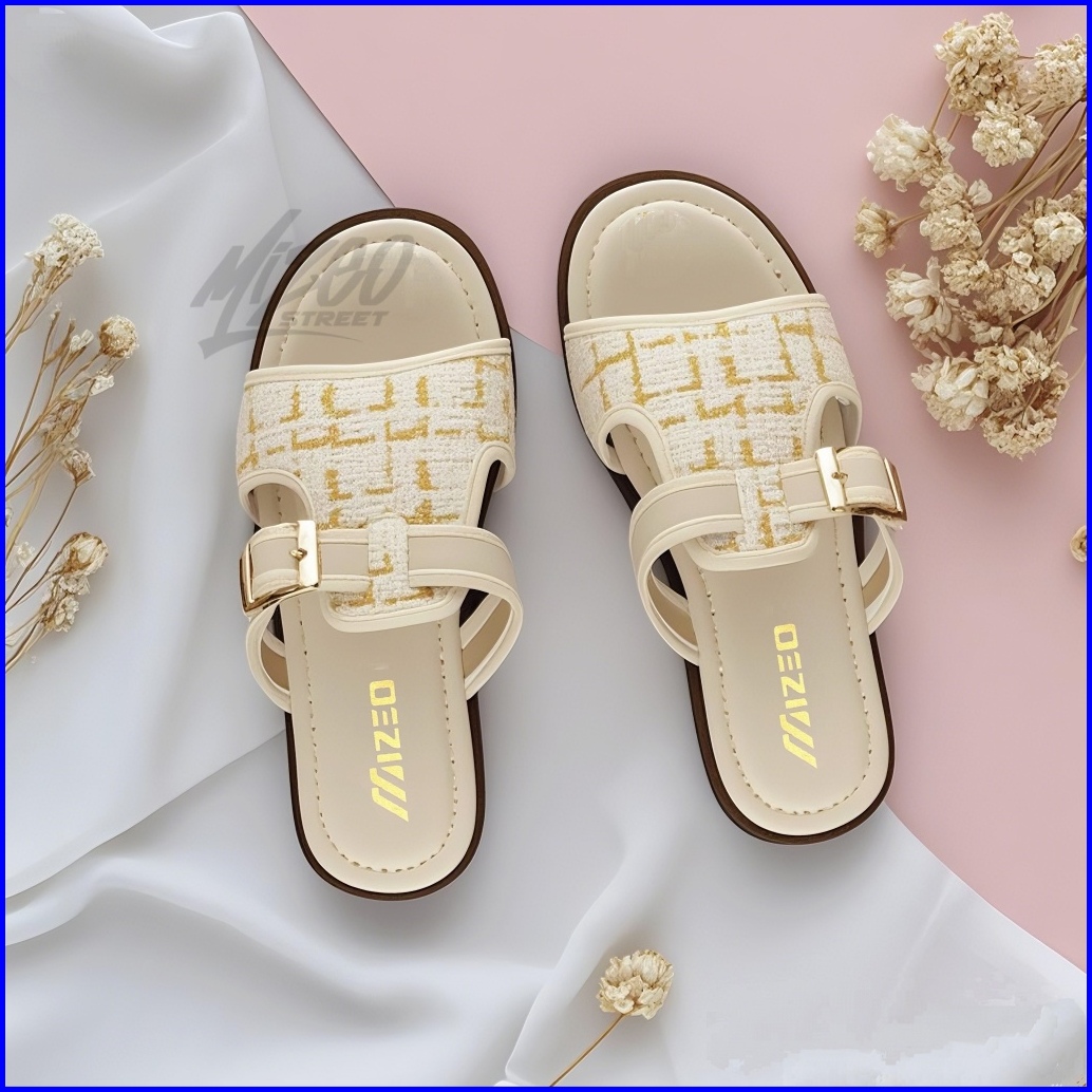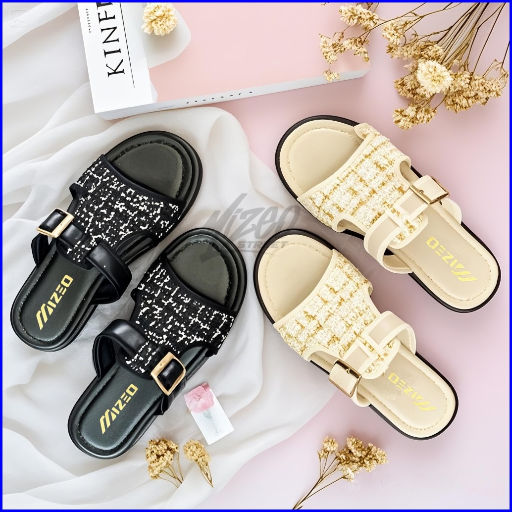 Sandal Slip On Wanita Tali Gesper Motif Rajut Trendy Kekinian