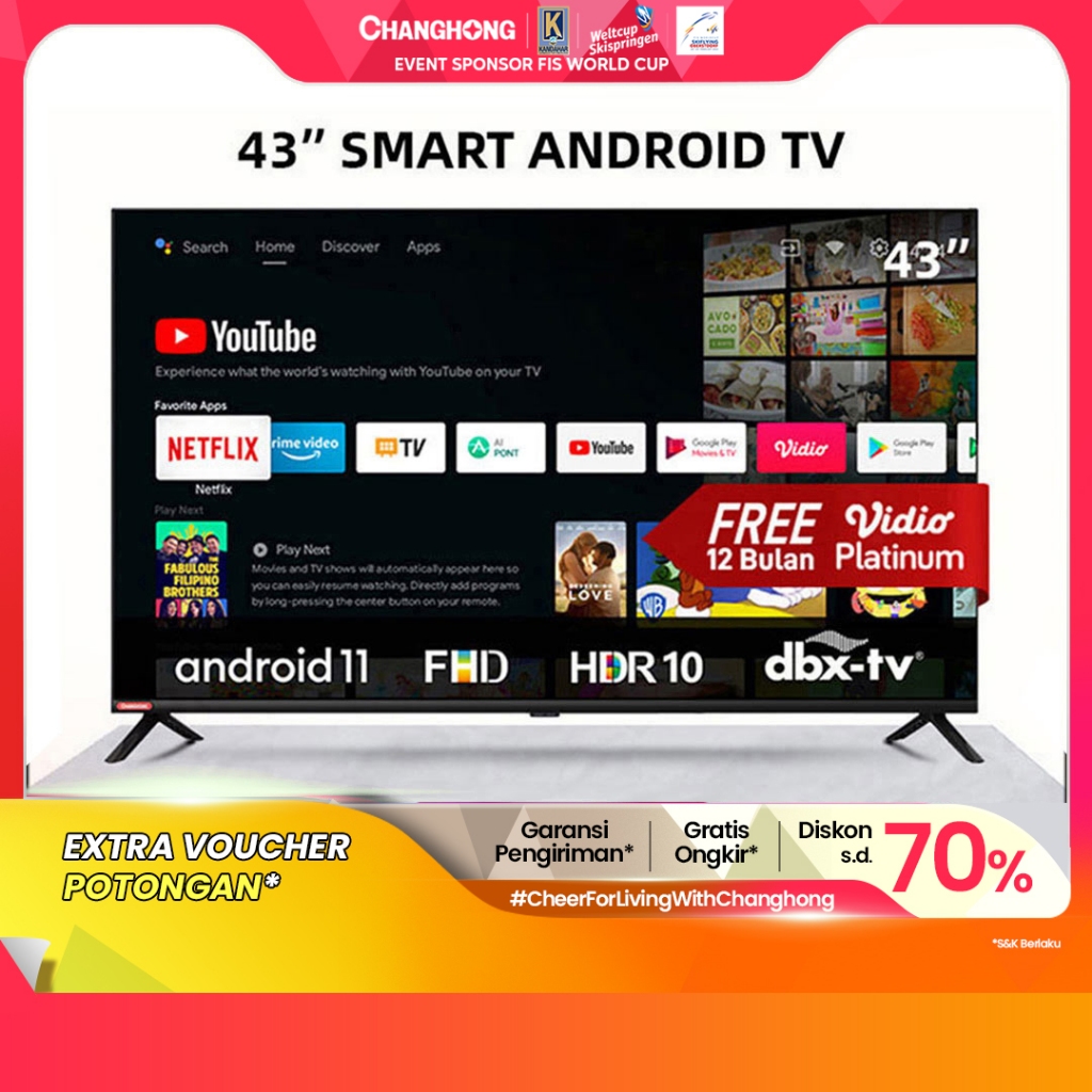 Changhong 43 Inch Newest Android 11 Frameless Smart TV Digital LED TV FHD -Netflix-Youtube-Google Playstore (L43G7N)
