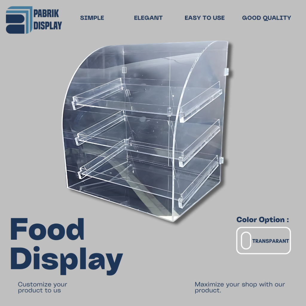 Display Kue Akrilik 3 Rak | Acrylic Food Cupcake Bakery 3 Shelves ( 45 x 35 x 50 cm )