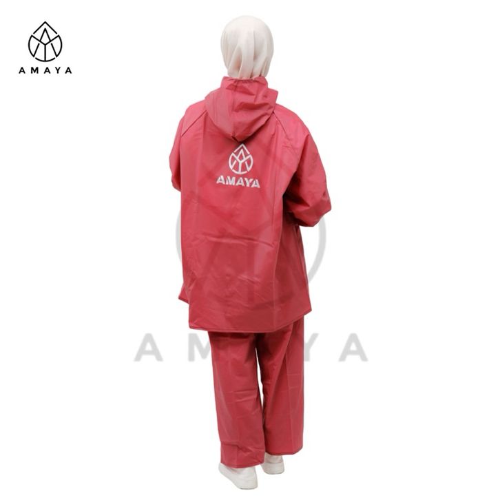 Jas Hujan Jaket Celana Pria Wanita Merah Maroon Anti Rembes