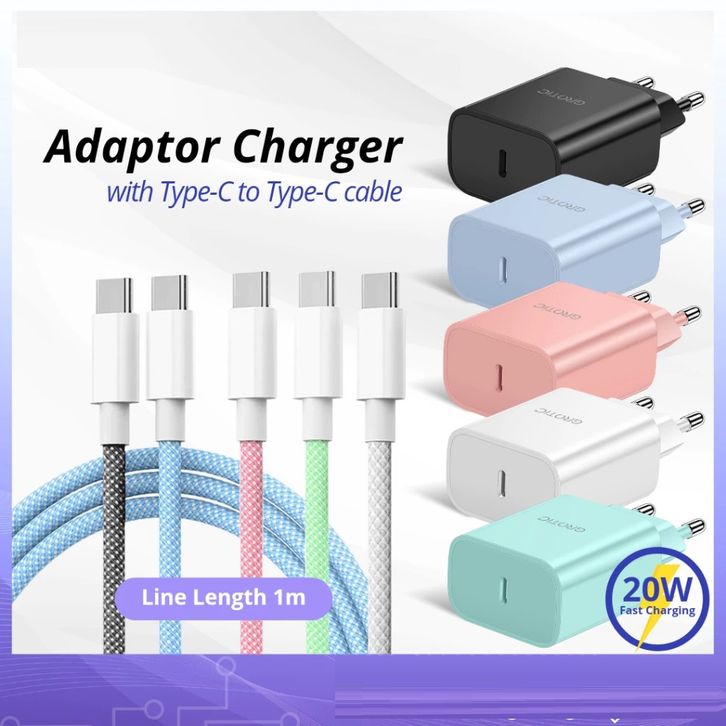 Charger Adaptor PD 20W 2.4A Kepala Charger Fast Charging QC3.0 Dengan Kabel Type-C