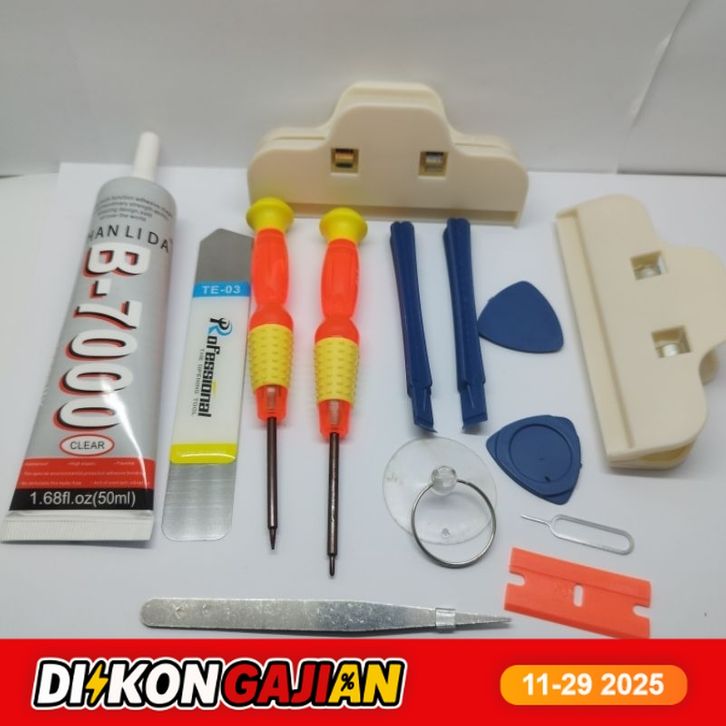 OBENG 1 SET / 1 PAKET SERVICE HP REPARASI 10 in 1 + LEM B7000 15/50 ML BENING & T7000 15 HITAM + TE03 PENJEPIT 2 PCS