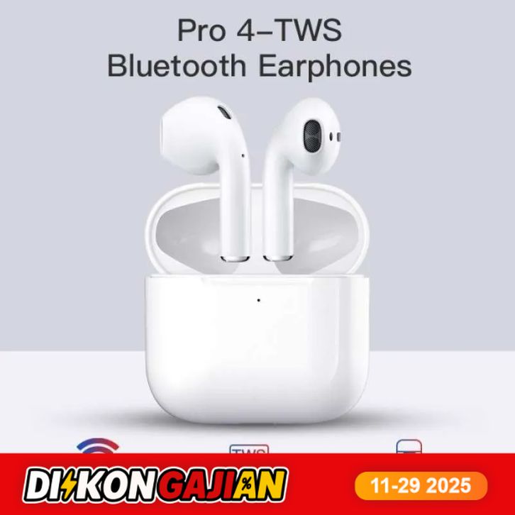 Pro 4 Headset Bluetooth TWS with Mic Earphone Bluetooth HiFi Stereo Handset Wireless Earbuds Olahraga Tahan Air