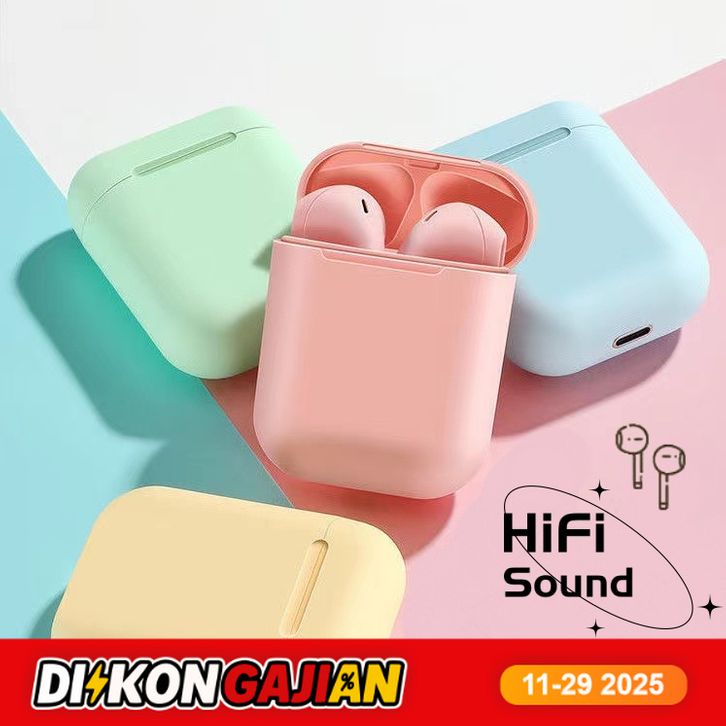 "TERLARIS" HEADSET BLUETOOTH INPODS WIRELESS i12 MACARON EARPHONE TWS BLUETOOTH 5.0 WARNA MACARON