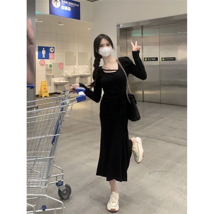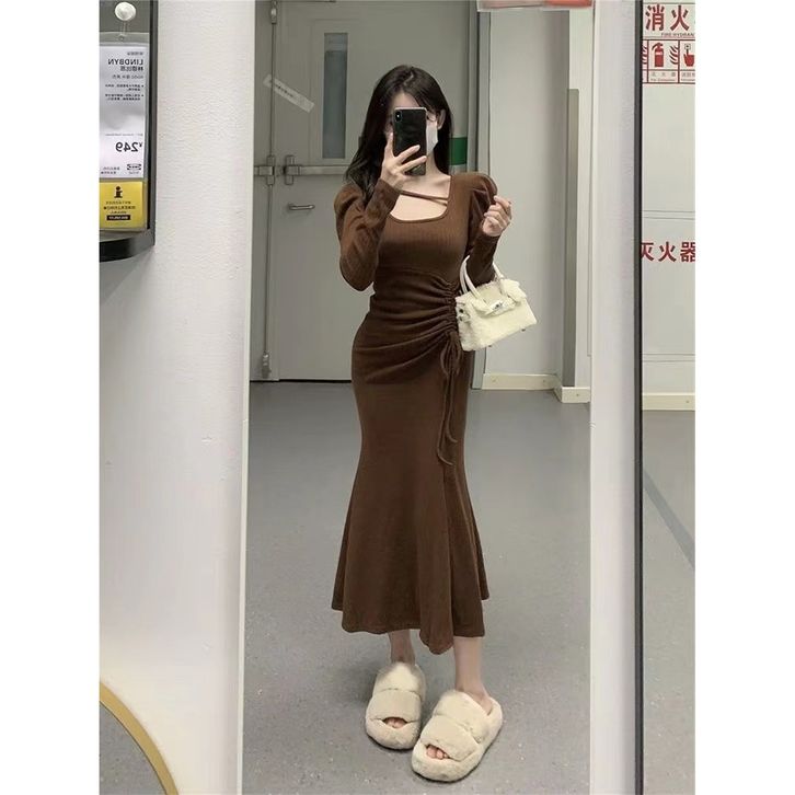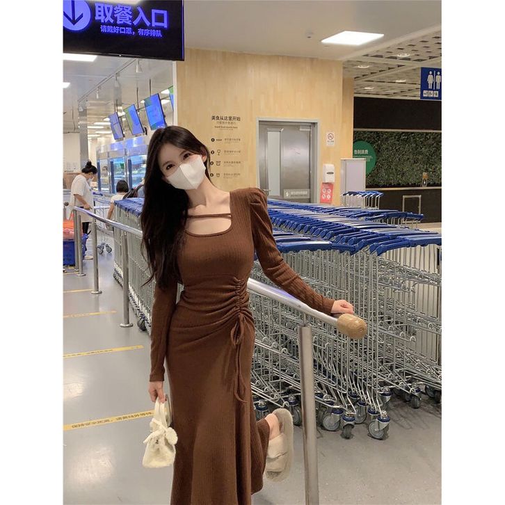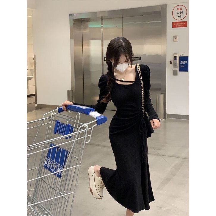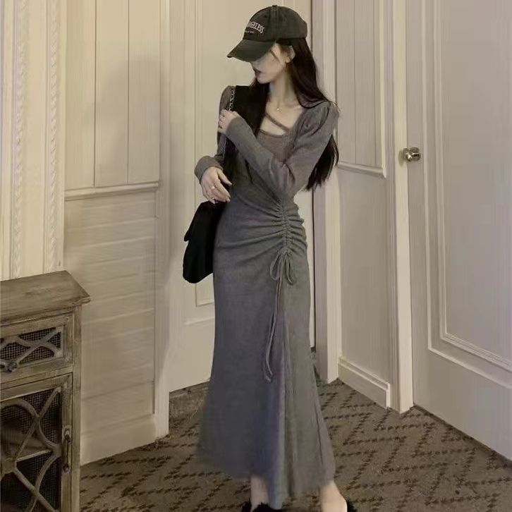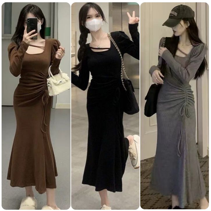First Girl-Gaun Wanita Basic Knit Slim Long Sleeve dress bodycon baju dress wanita- G009