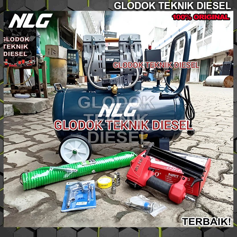 PAKET AIR NAILER PAKU TEMBAK ANGIN KOMPRESOR OILLESS 1.75 HP 50 LITER TERBAIK ORIGINAL NLG OL1390SS OL 1390 SS 50 L