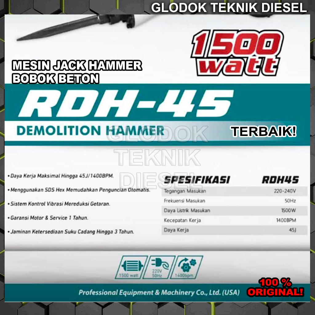 Proquip Mesin Bobok Beton Demolition Jack Hammer 1500 Watt HD RDH-45 ORIGINAL