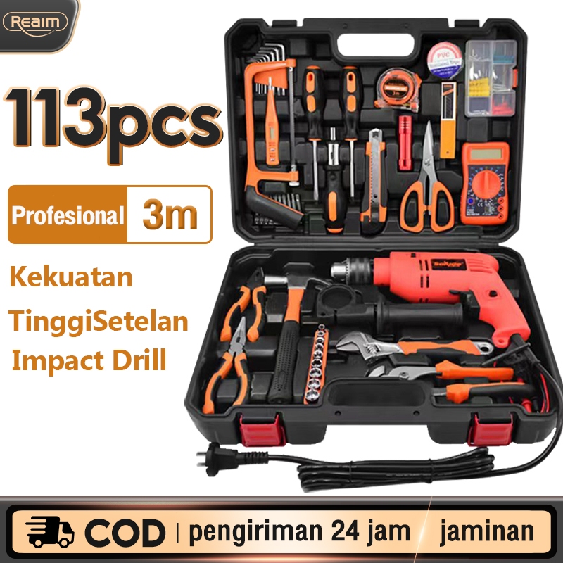 Hand Tool Set Kotak Alat Multifungsi Bor Listrik Set Obeng Tukang Listrik REAIM