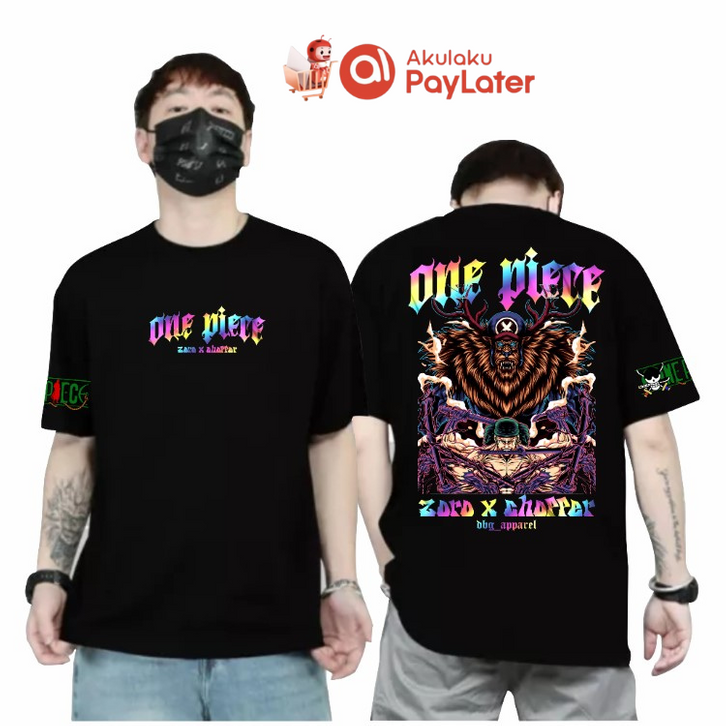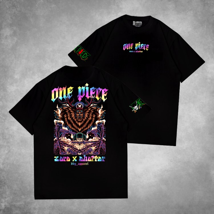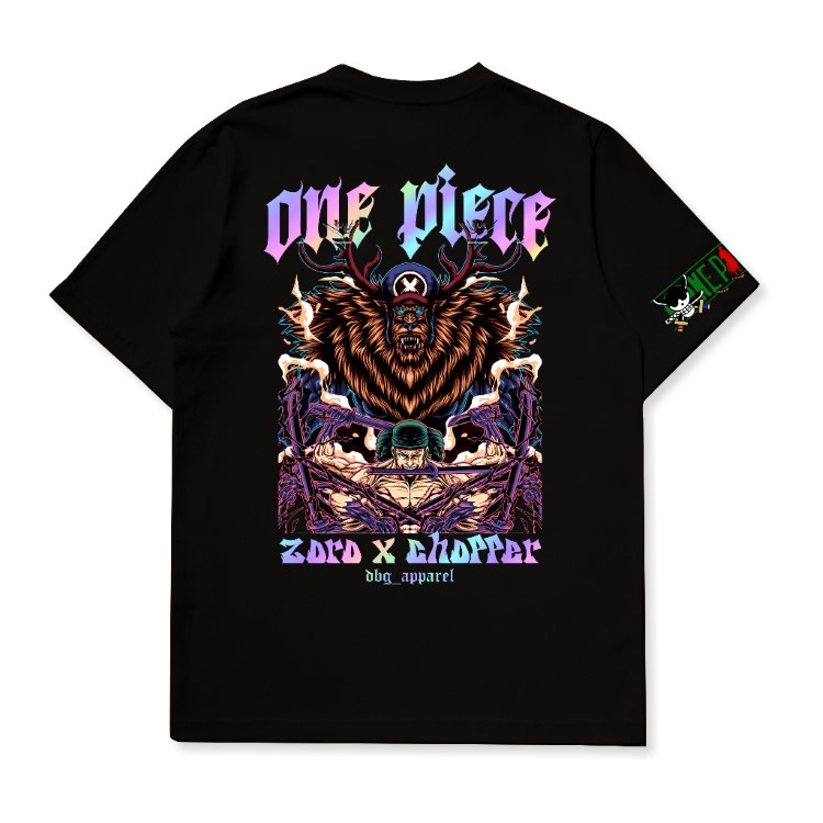 Binigue Baju Distro Pria HOLOGRAM RAINBOW One Piece ZORO x CHOPPER T shirt Kaos Pria Oversize T-shirt Tees Pria Wanita