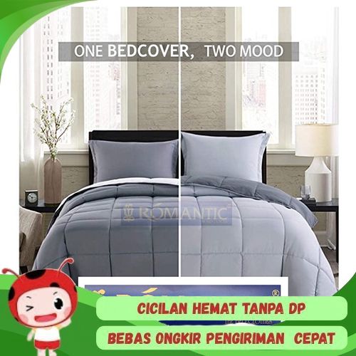 [Mall] Two tone Bedcover sprei set by ROMANTIC katun jepang adem bahan halus abu tua muda minimalis