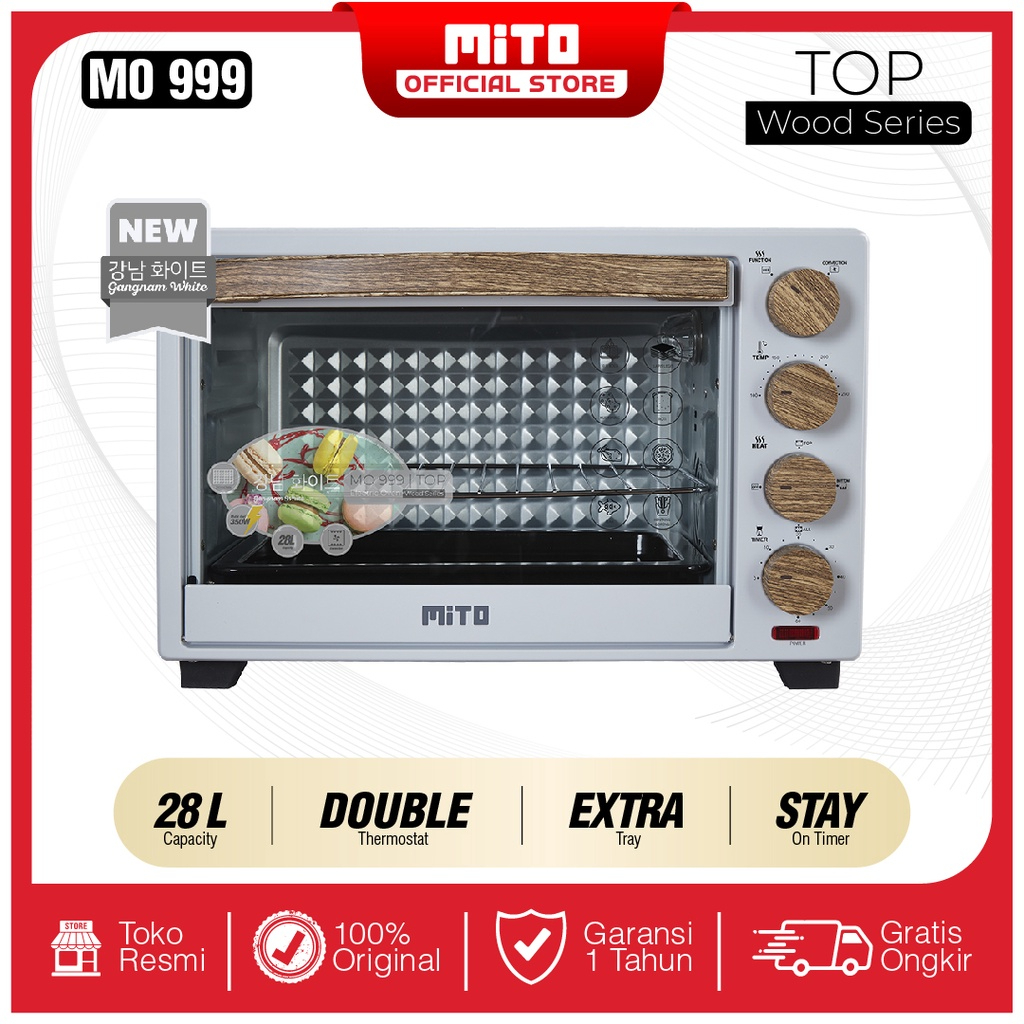OVEN LISTRIK MITO 28 LITER MO 999 TOP WOOD SERIES ORIGINAL PEMANGGANG KUE DAN MAKANAN MURAH BERKUALITAS - WHITE