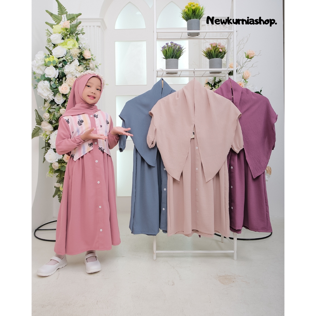 Gamis Anak Perempuan Bahan Crinkle Set Hijab 2-11 Tahun Yasmin SERIES