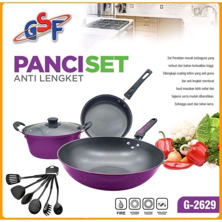 Panci wajan penggorengan teflon anti lengket + utensile set GSF G 2629