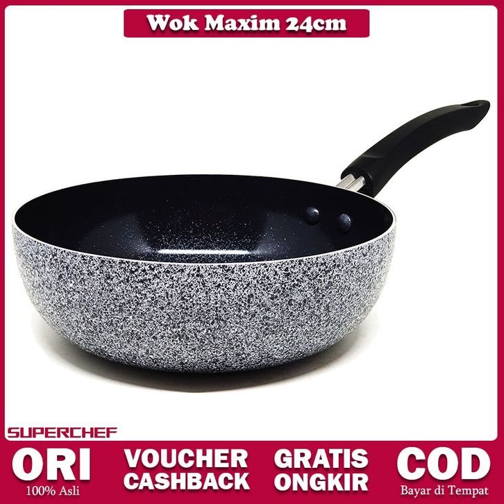 Maxim 24cm Wok Pan Tinggi Ceramic Anti Lengket Anti Gores | Penggorengan Keramik | Teplon